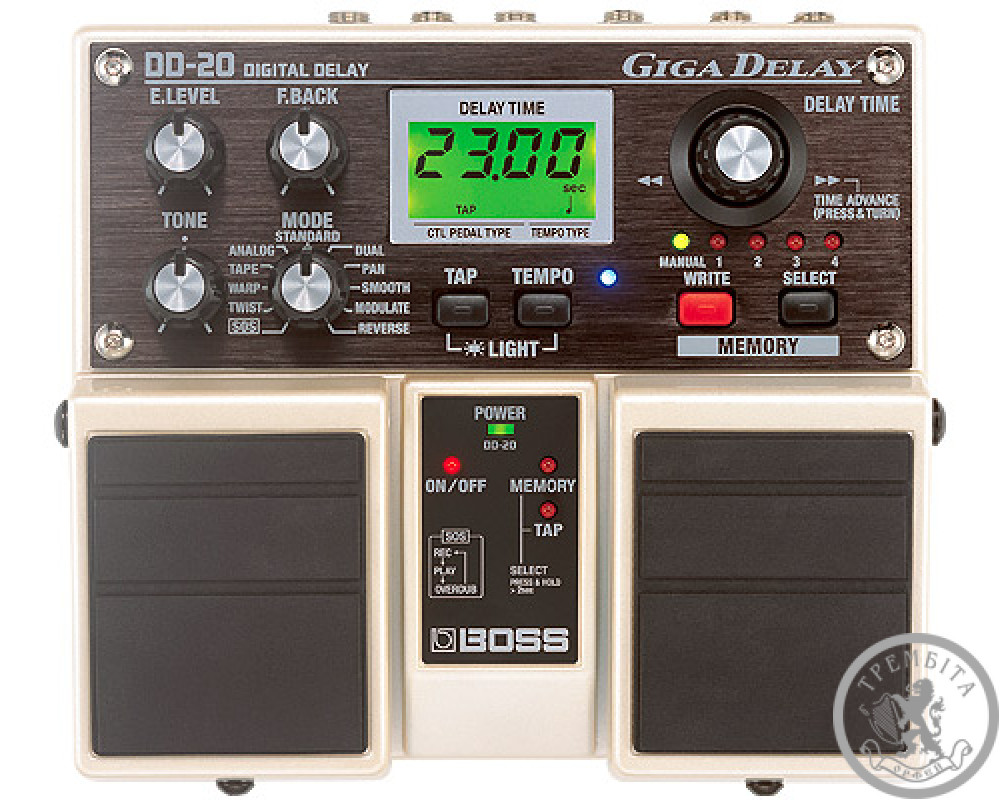 В арсенале педали находится 11 режимов задержки, включая новейшие Smooth (ультраплавное Delay) и Twist (очень быстрый, похожий на Over-The_Top). В Вашем распоряжении будут и старые аналоговые и ленточные задержки, в числе которых традиционный Deley и обратная задержка Reverse Delay. Все это в очередной раз подтверждает продуманность педали DD-20.