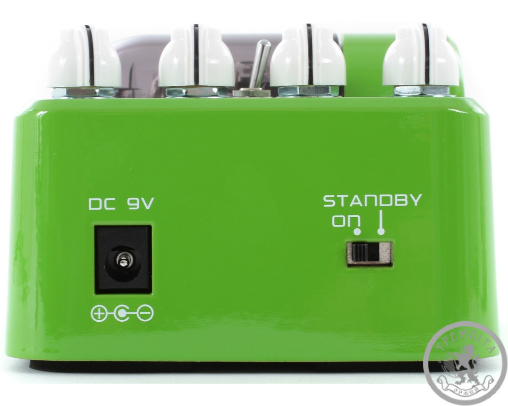 Элементы управления в педали представлены ручками «Volume», «Bass», «Tone» и «Gain». Используя эти регуляторы, вы можете создать индивидуальное и неповторимое ламповое звучание. Кроме того, на передней панели находится и переключатель «Bright». Об активности педали сообщает яркий красный светодиод, который виден даже на ярко освещенной сцене.
