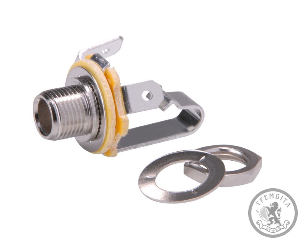 Небалансный 2-х контактный 6,3 гнездо с удлиненными контактами для монтажа на панель с гайкой с фланцем, толщина панели до 5,5 мм
