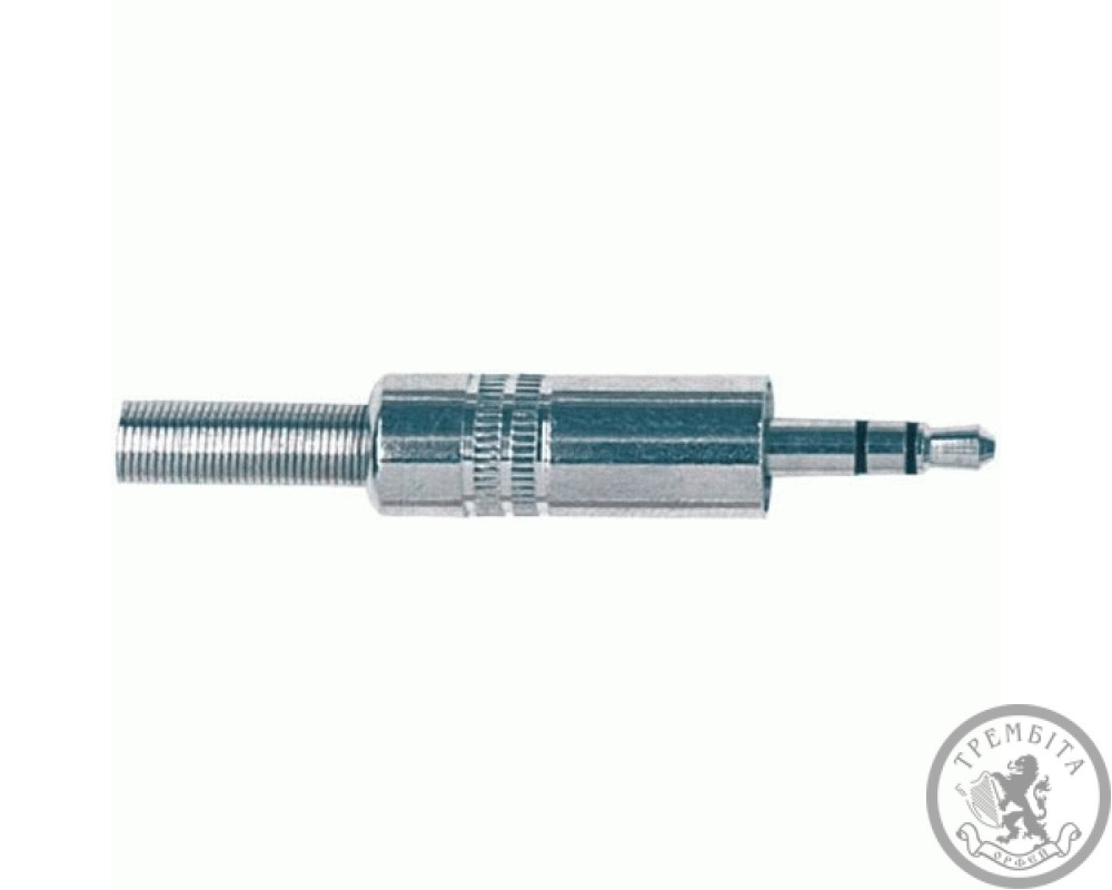 Штекер стереоджек 3.5 мм из никелированной латуни для гибкого кабеля диаметром до 6.2 мм