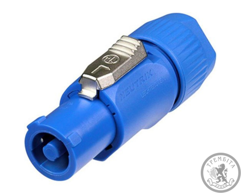 Профессиональный коннектор питания PowerCON типа «мама» с замком-фиксатором, 250 В / 20 A, power-in, винтовые клеммы, бронзовые контакты с посеребрением, диаметр кабеля 6-15 мм, синий корпус.