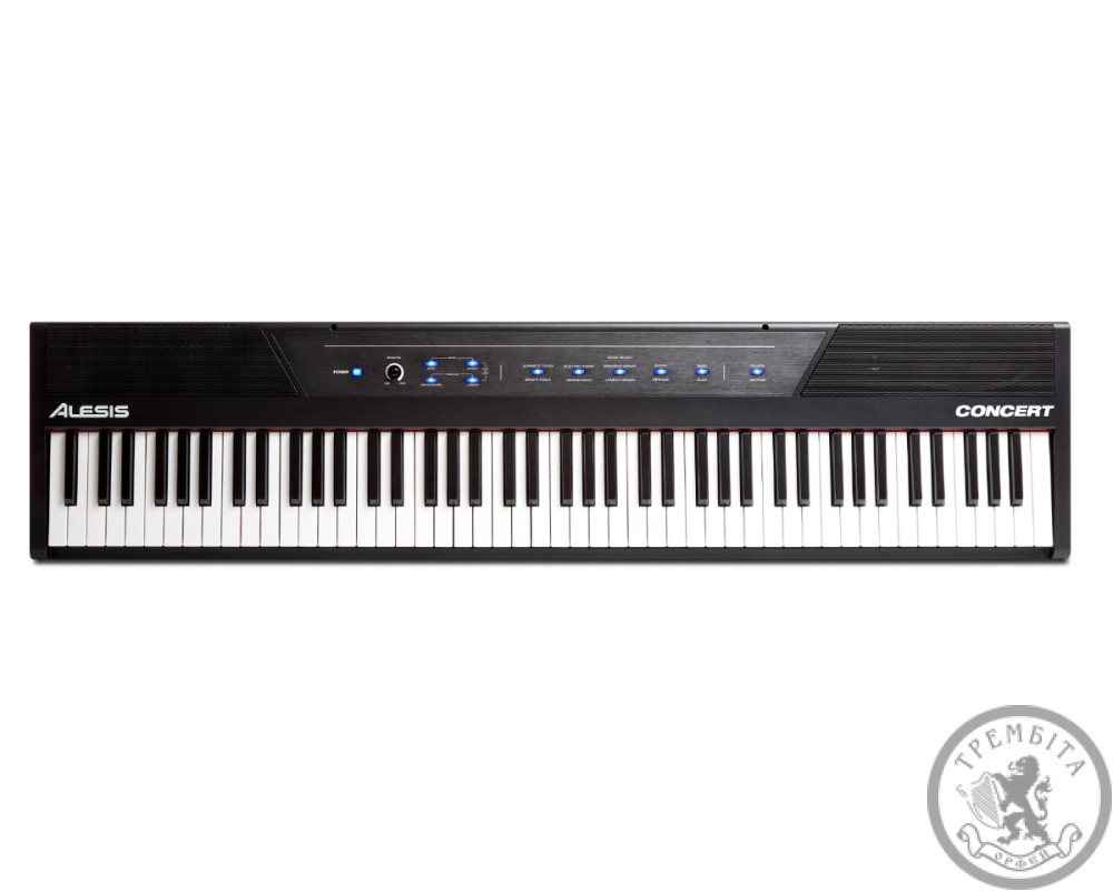 Alesis Concert - це повнофункціональне цифрове піаніно з 88 повнорозмірними напів-виваженими клавішами з регульованою чутливістю до сили натискання. Concert має 10 вбудованих реалістичних тембрів: акустичне фортепіано, яскраве фортепіано, електричне піаніно, клавесин, струнний орган, церковний орган, синтезатор, струнні, бас-гітара і клаві. Налаштуйте голоси, об’єднавши будь-які два одночасно в режимі Layer Mode для отримання повного, насиченого тону. Вони також можуть бути призначені тільки лівої або правої руки в режимі Split. Ви навіть можете додати регульовані реверберацію і хорус для подальшої настройки звуку. Завдяки потужним 20-ватним вбудованим динамікам та 128-нотній поліфонії, Concert забезпечує ультра-реалістичний звук з відмінним ігровим досвідом.