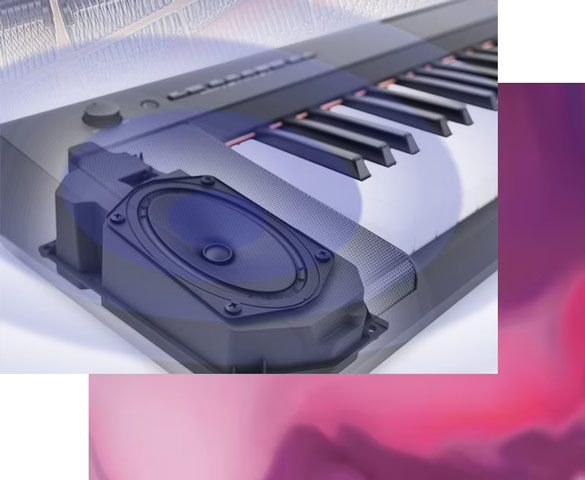 Клавіші фортепіанного типу Piaggero дозволяють використовувати його як MIDI-клавіатуру для введення музичних даних або навіть аудіозапису власного виконання. Також ви можете відтворювати улюблені пісні зі своїх смарт-пристроїв* через динаміки NP-35 та насолоджуватися грою під них.