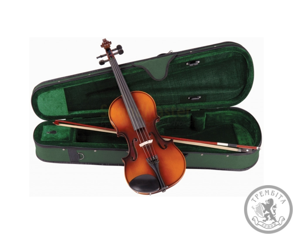 Скрипковий набір 1/2. Верхня дека - ялина, нижня дека і обичайка - клен, матовий кленовий гриф з накладкою з бука, тримач для струн з можливістю мікропідстройки, кленовий підборідник. В комплекті разом зі скрипкою йде смичок з натуральним сивим кінським волосом, каніфоль і жорсткий кейс