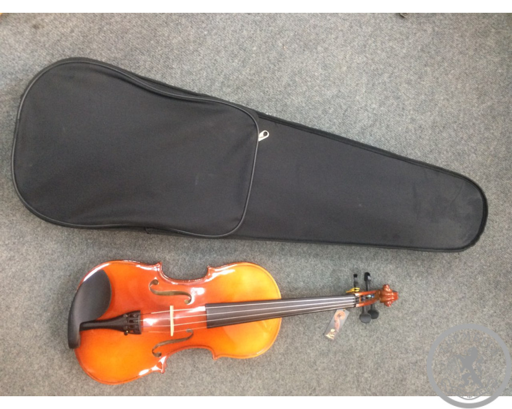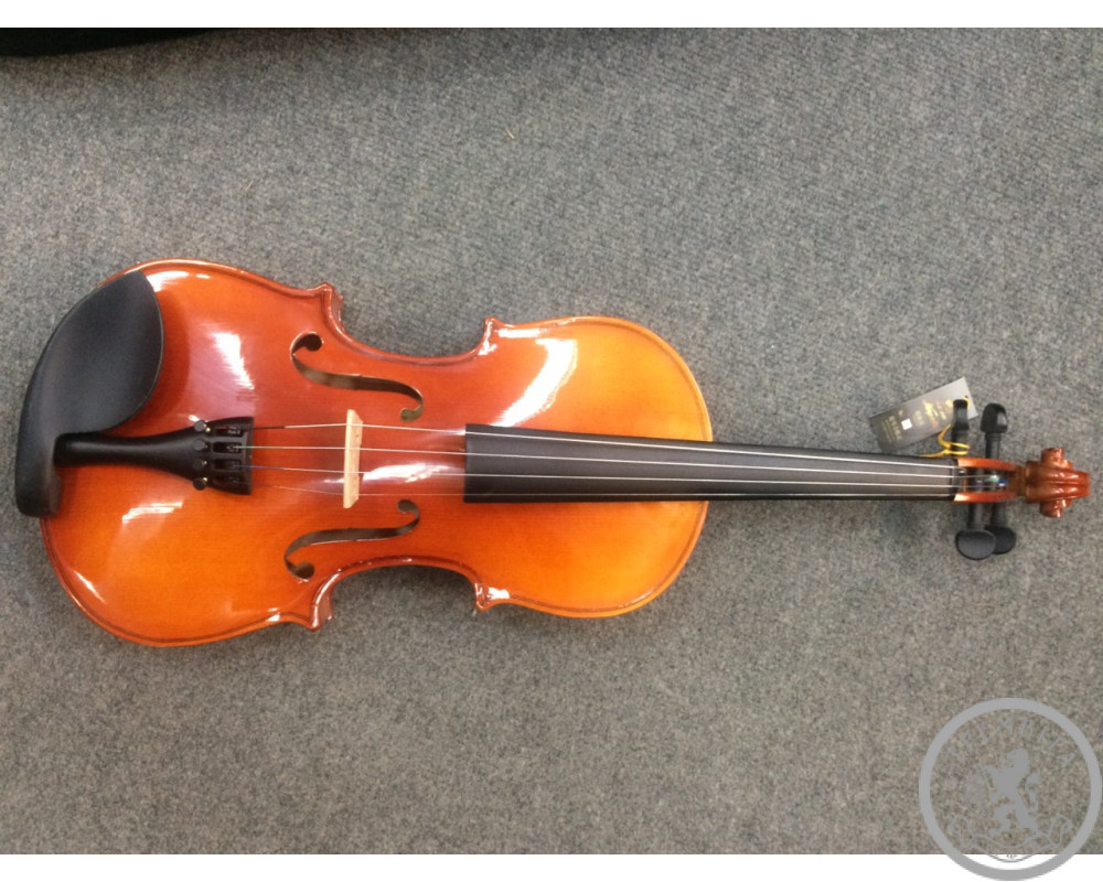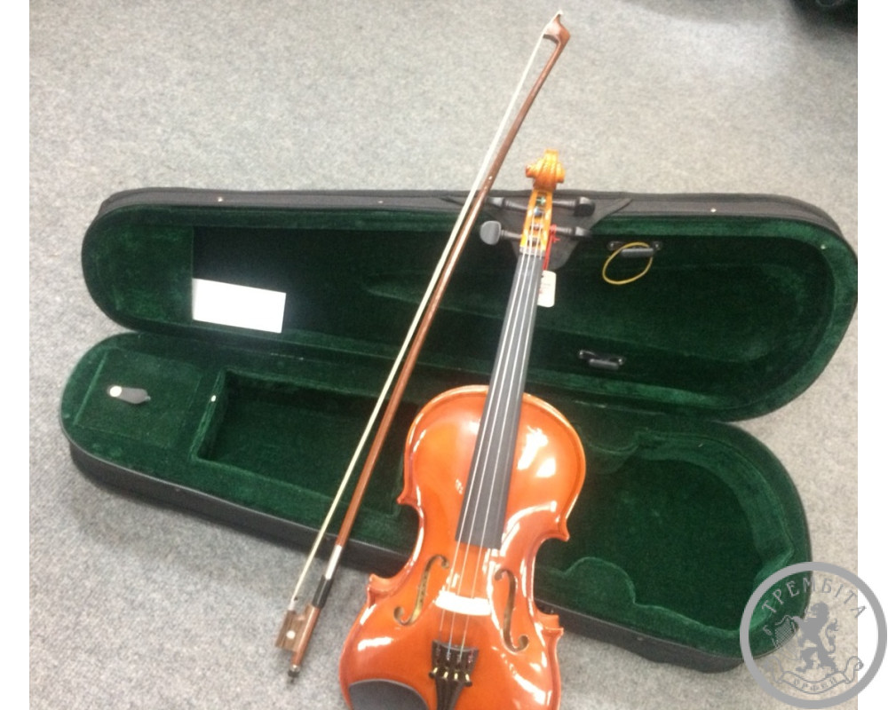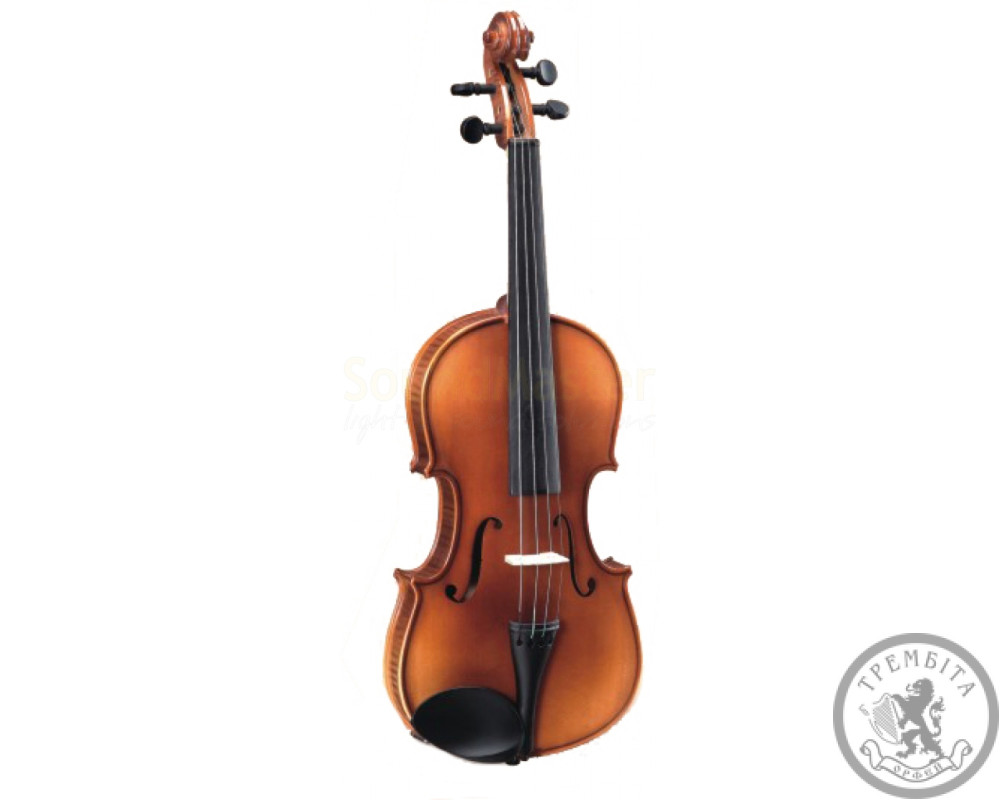 Скрипка ученическая серии "Crafted" размером 4/4 с еловой верхней декой, нижней декой и обечайками из огненного клена, накладкой грифа, колками, струнодержателем, подбородником из черного дерева и лакированным корпусом.