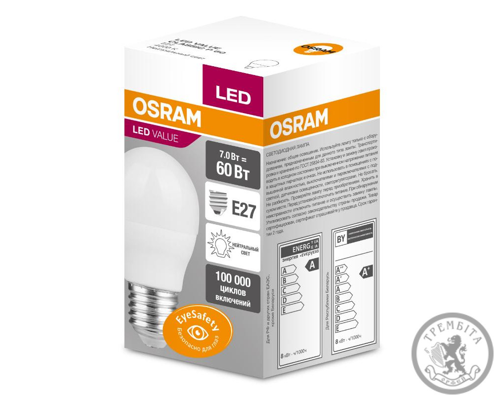 Лампа светодиодная OSRAM LED P60 7W (550Lm) 4000K E27