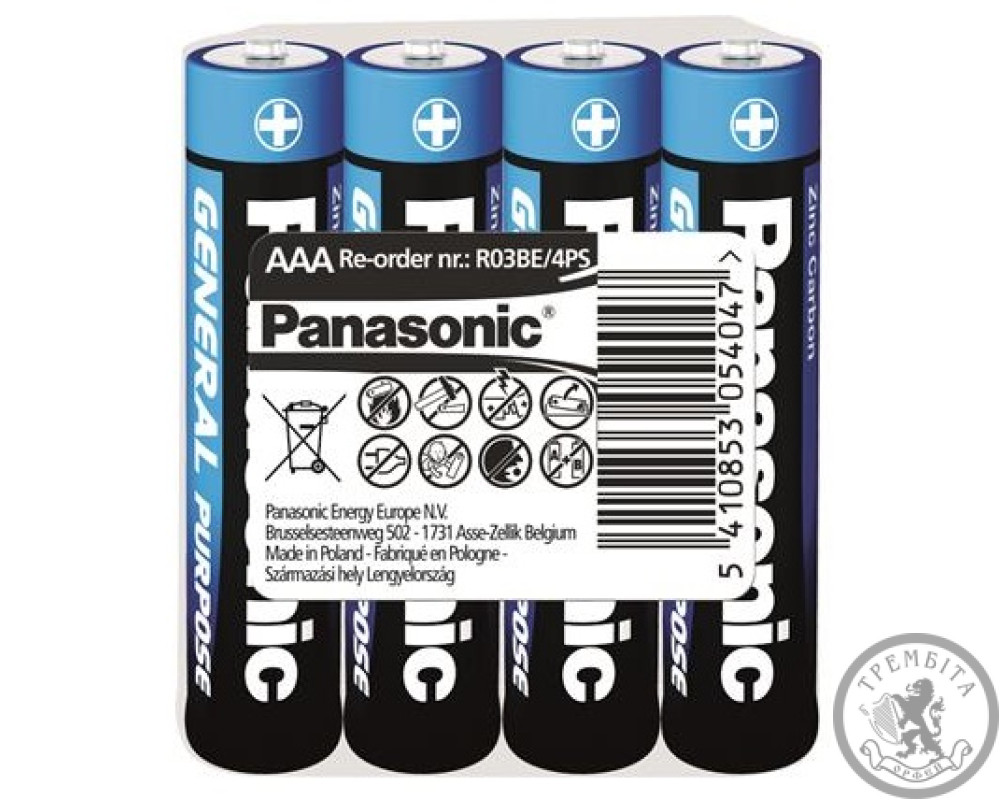 Батарейка Panasonic GENERAL PURPOSE вугільна цинкова AAA(R3) плівка, 4 шт