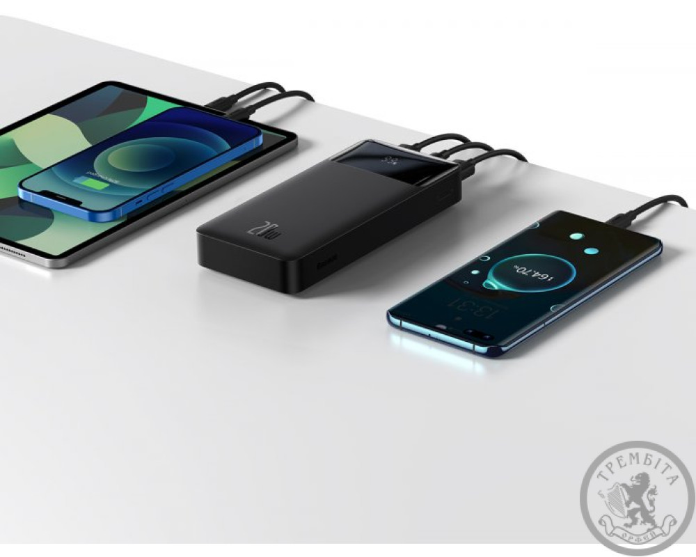 Портативная батарея оборудована 4 разъемами, что позволяет одновременно заряжать до 3 гаджетов. Подходит для подзарядки смартфонов, планшетов, наушников, умных часов, игровых консолей и других небольших гаджетов. Поддержка протоколов быстрой зарядки PD, FCP, QC, AFC позволяет зарядить iPhone 12 до 50% за пол часа, а также быстро заряжать гаджеты брендов Huawei, Samsung, Mi и т.д.
