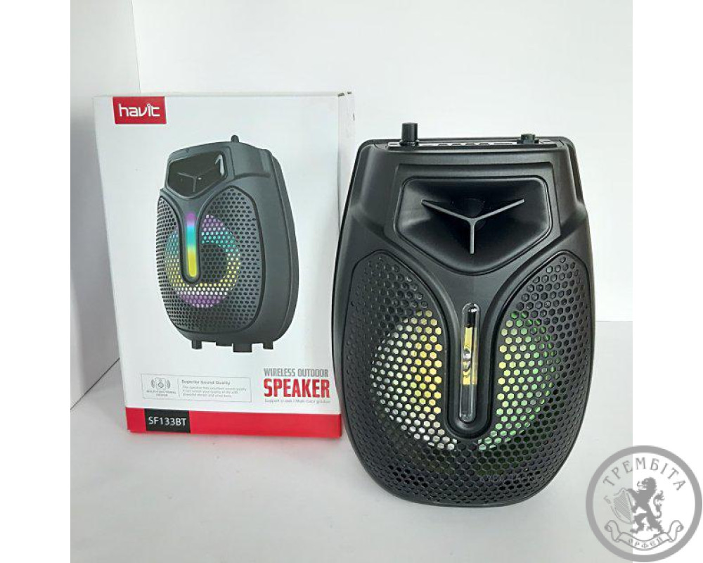 Колонка Havit HV-SF133BT (черная) - беспроводная колонка с подсветкой динамика, выделяющаяся широким функционалом, качественным звуком и оригинальным дизайном. Устройство может воспроизводить аудио из разных источников звука, таких как: смартфоны, планшеты, ноутбуки, MP3-плееры, USB-флешки, карты памяти MicroSD. Колонка может подключаться к гаджету непосредственно через кабель AUX или используя беспроводную связь Bluetooth. Встроенный FM-приемник пригодится в случае отсутствия внешних носителей – Вы сможете слушать любимые треки, просто настроившись на нужную радиоволну. За воспроизведение звука отвечает один мощный динамик на 5 W диаметром 65 мм, звучание характеризуется чистотой, глубиной на высокой громкости.