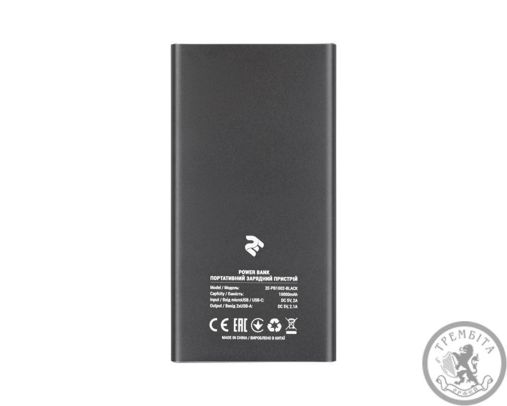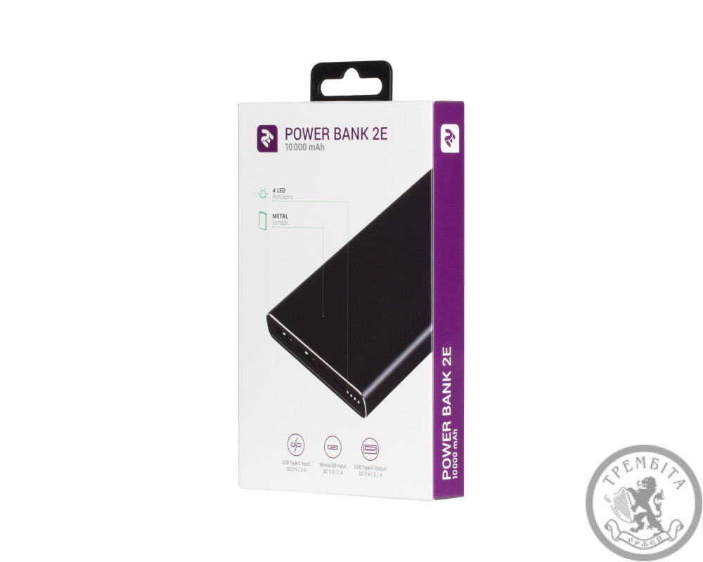 Power Bank 2Е 10000mAh, Metal surface, DC 5V, 2.1A, black