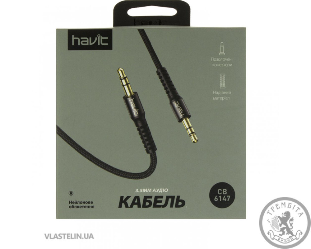 Кабель- аудіо Havit HV-CB66 призначений для передачі аудіосигналу між будь-якими пристроями, оснащеними 3.5 мм роз'ємом. За допомогою кабелю смартфон, планшет, MP3-плеєр або будь-яке інше пристрій можна легко підключити до портативних колонок, підсилювачів або автомагнітол. Міцні металеві штекери і тканинне обплетення подовжують термін експлуатації кабелю, а позолочені контакти і провідник з безкисневої міді забезпечують збереження високої якості звуку.