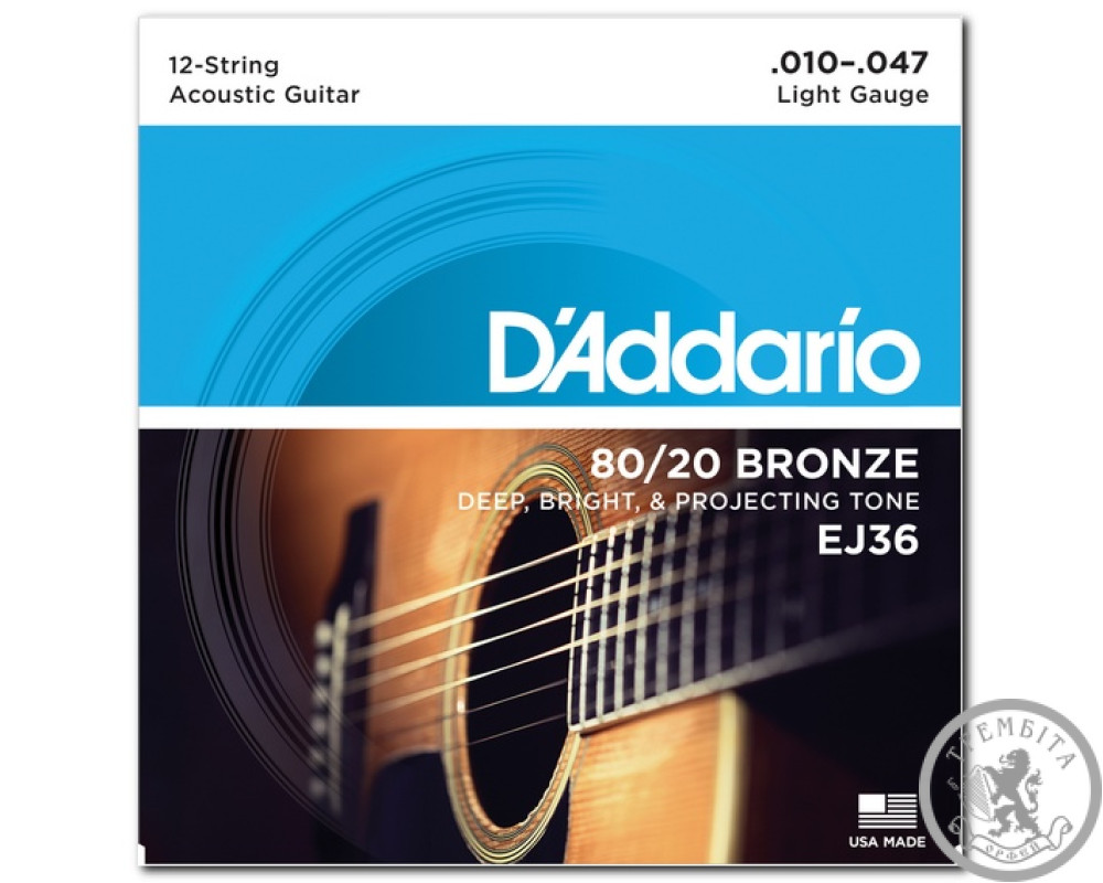 Струны для акустической гитары D'ADDARIO EJ36 80/20 BRONZE REGULAR LIGHT 12-STRING (10-47)