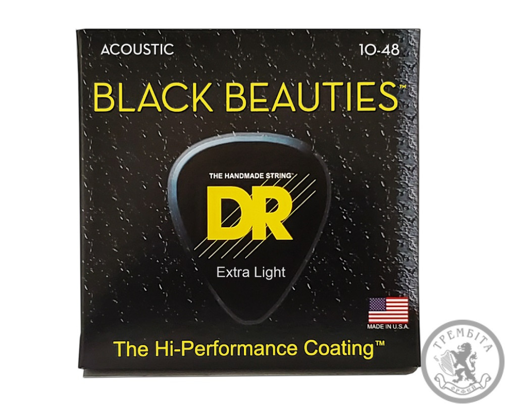 Струни для акустичної гітари DR BKA-10 BLACK BEAUTIES ACOUSTIC - EXTRA LIGHT (10-48)