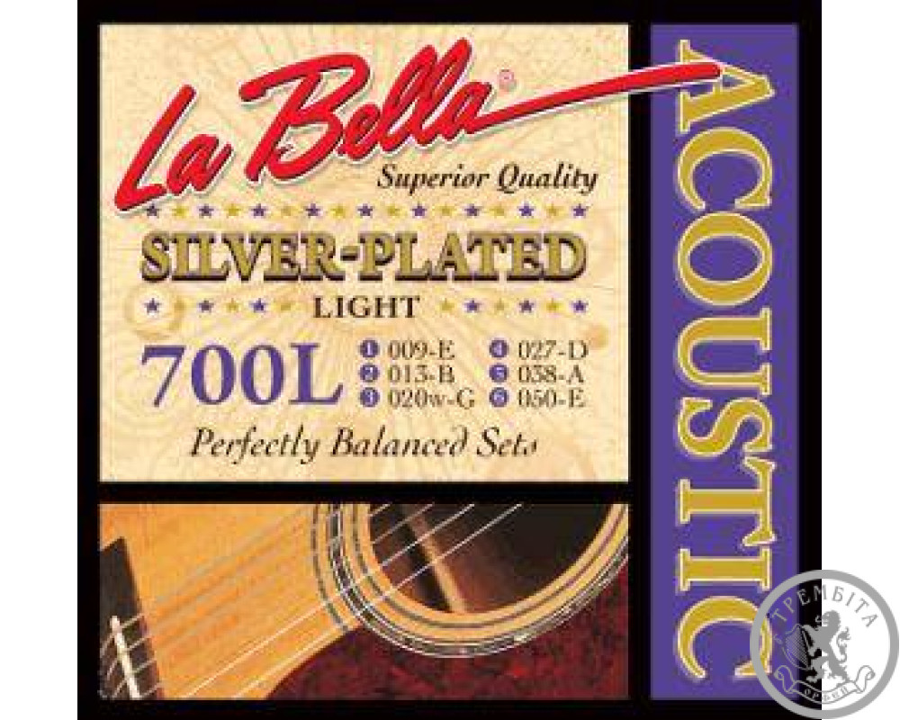 Струны для акустической гитары La Bella 700L ак.Silver Pt, 9-50