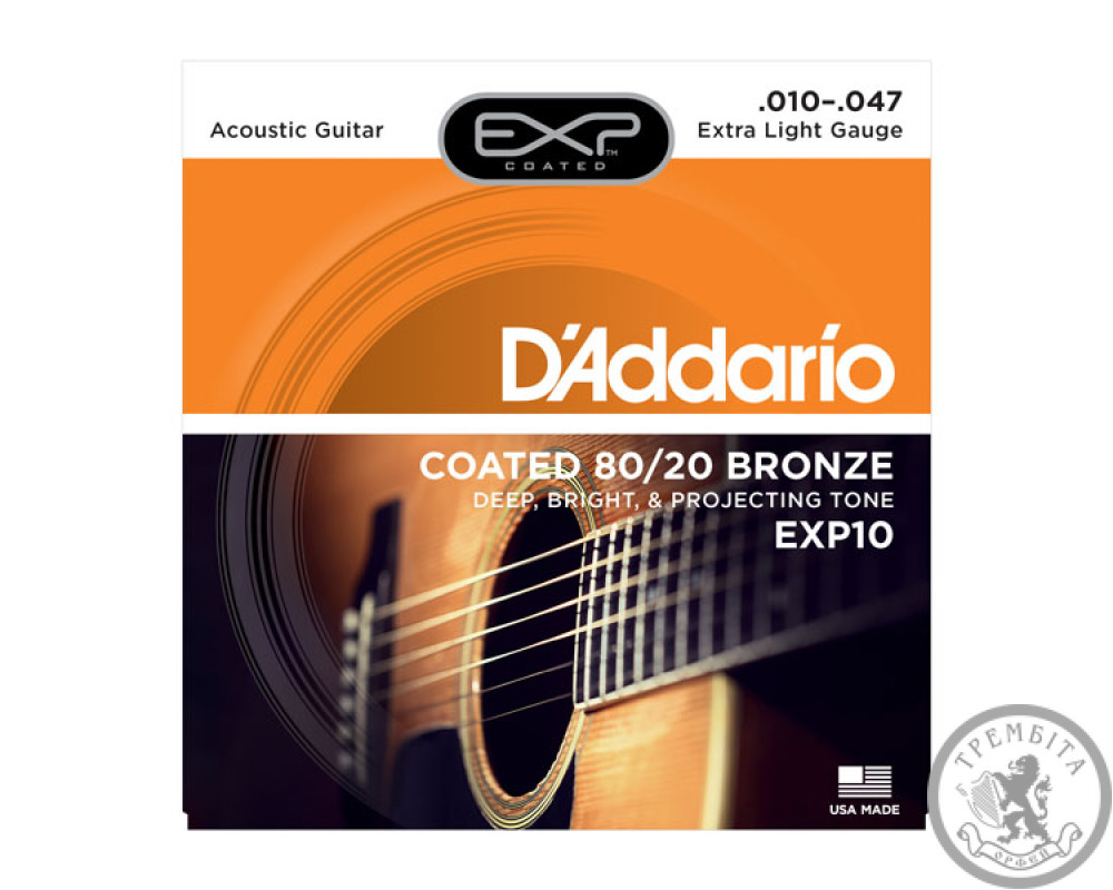 Струны для Акустической гитары D'ADDARIO EXP10 EXP COATED 80/20 BRONZE EXTRA LIGHT (10-47)