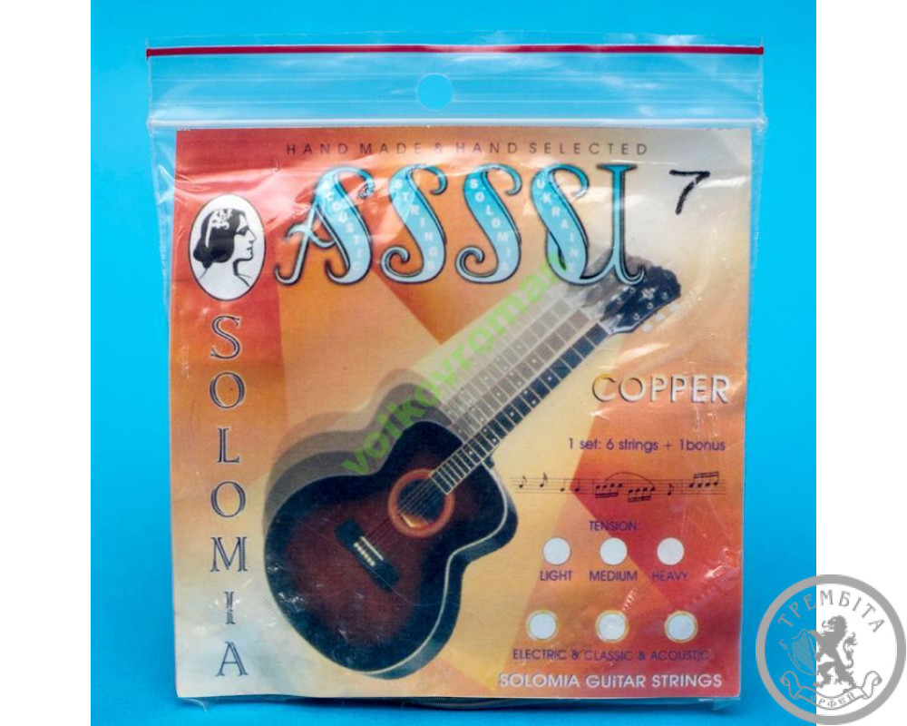 Струны культурно-художественной фирмы "Соломия", благодаря использованию уникальной технологии изготовления и высококачественных материалов, пользуются популярностью во многих профессиональных музыкантов и любителей Украины, России, Европы.