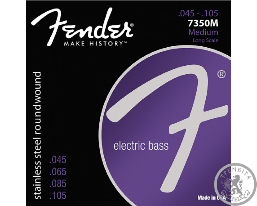 FENDER 7350M - Струны для бас-гитары, 4 струны, размер 45-105, стальные струны, круглая обмотка.