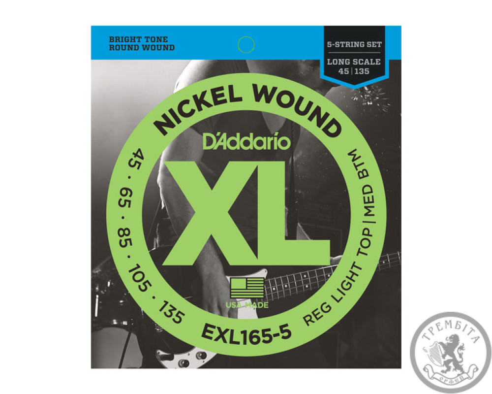 Струны для бас-гитары D`ADDARIO EXL165-5 XL REG LIGHT TOP / MED BOTTOM 5 STRING 45-135