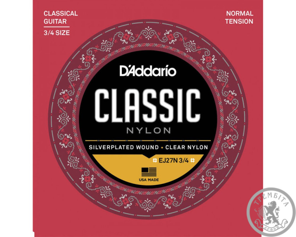 Струны для классической гитары D'ADDARIO EJ27N 3/4 STUDENT CLASSICS NORMAL TENSION