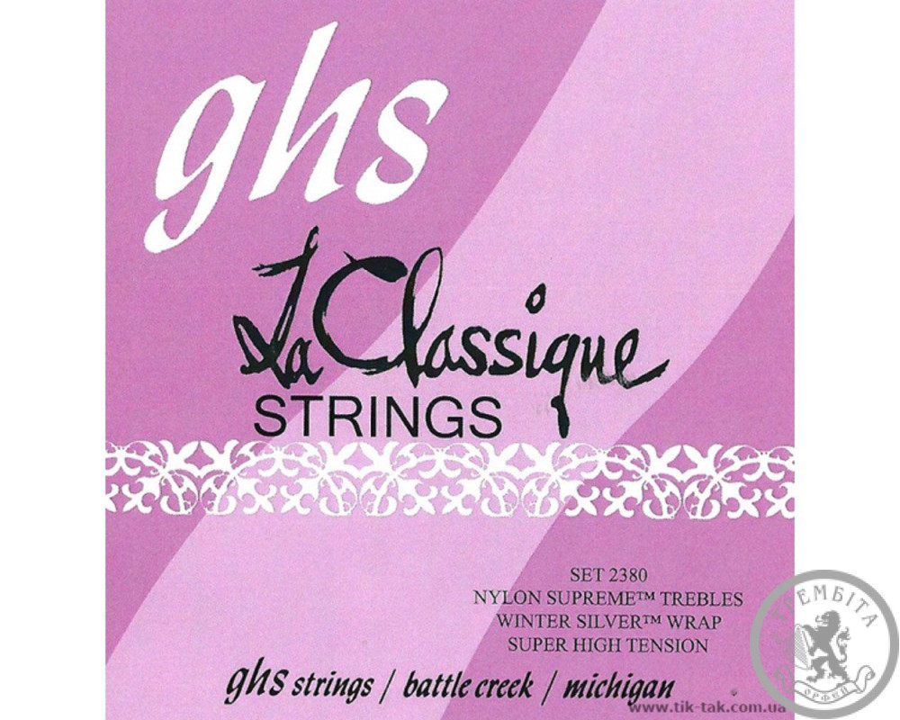 GHS 2380 - нейлоновые струны для классической (шестиструнной) гитары со шлифованной посеребренной обмоткой, очень сильное натяжение (Extra Hard Tension), серия La ClassiqueВ основе струн GHS 2380 - высококачественный премиум нейлон (Supreme), а специальным образом отшлифована круглая обмотка придает звучанию теплый, сочный, яркий звук без лишнего шума.