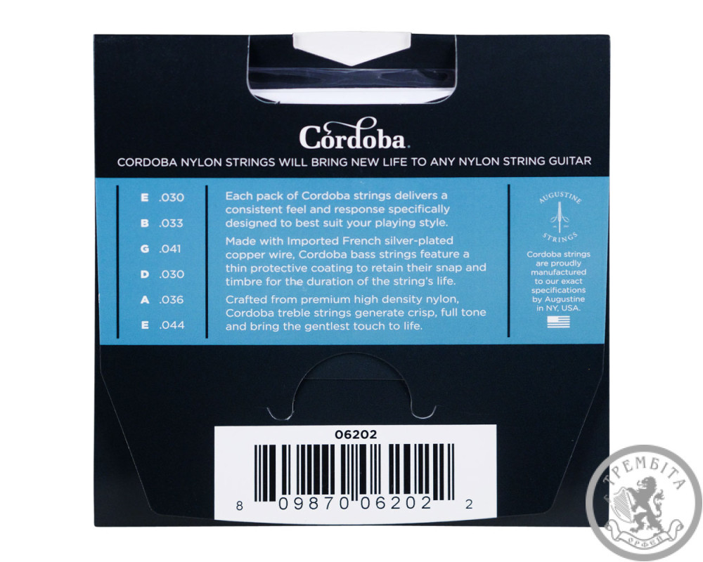 Нейлонові струни сильного натягу Córdoba призначені для музикантів, які прагнуть отримати яскравіший відгук, кращу проекцію та більш швидку реакцію на дотик. Басові струни Cordoba виготовлені з імпортного європейського посрібленого мідного дроту та мають тонке захисне покриття, яке зберігає артикуляцію та повнозвучність тембру протягом усього терміну служби струни. Дисканти виготовлені з преміального нейлону високої щільності, створюють чіткий, насичений тон і жваво реагують навіть на найтендітніший дотик пальців гітариста.