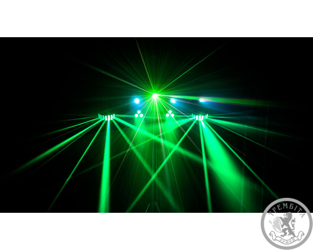 - 2 ефекти Derby створюють багатобарвну динамічну сцену