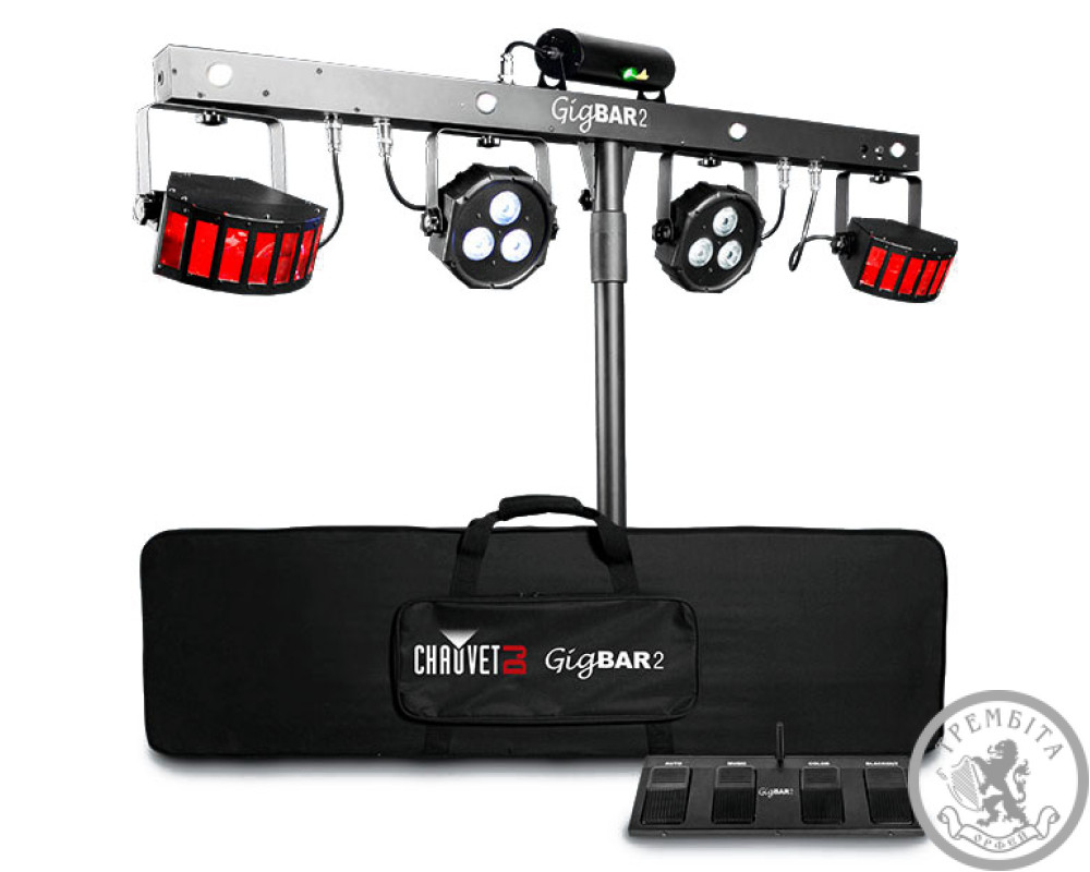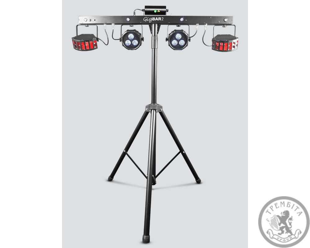 GigBAR 2 - це чудова мобільна система світлових ефектів, що включає заливку з ультрафіолетовим режимом і стробоскоп. GigBAR 2 складається з двох LED Derby приладів, заливки, лазера і чотирьох яскравих стробоскопів, змонтованих на одній стійці.