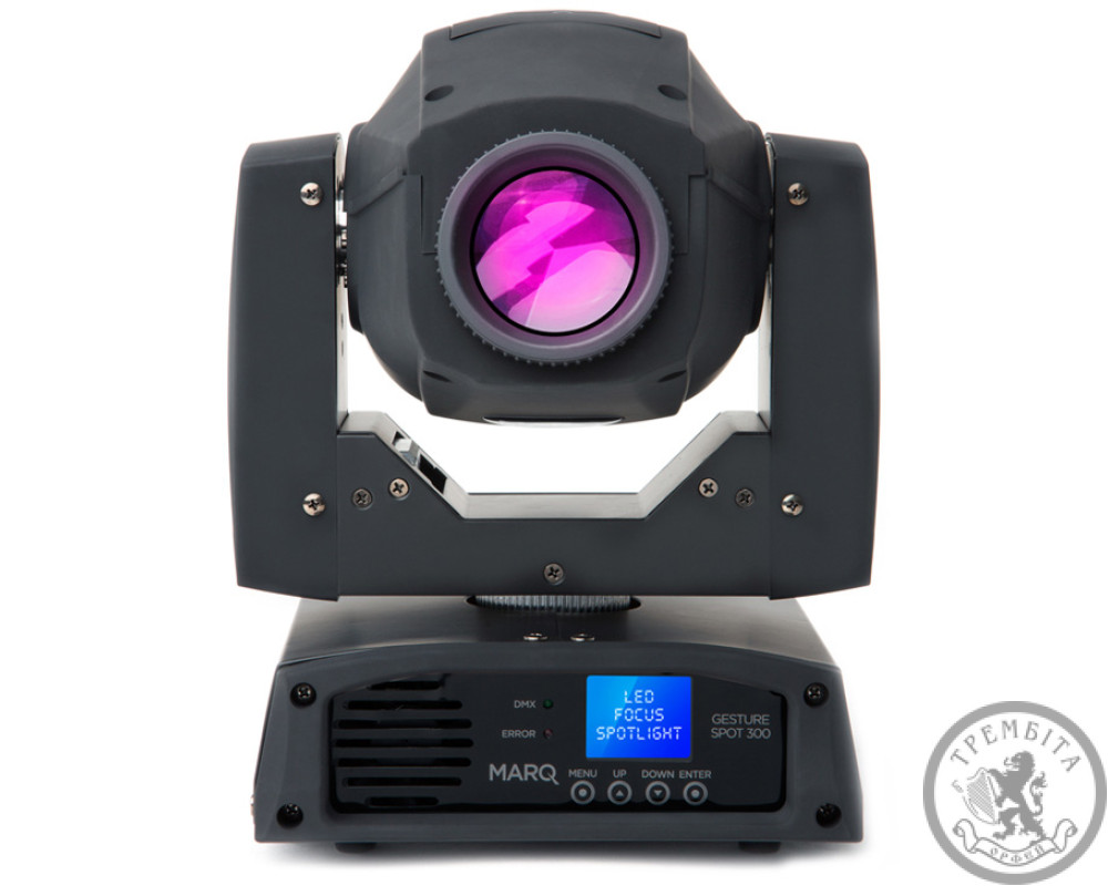Насолоджуйтесь яскравими і чіткими гобо проекціями, використовуючи Gesture Spot 300, оснащений потужним 60Вт LED випромінювачем і зручною ручним фокусуванням. Знімна дверцята відсіку гобо, дозволяє легко замінювати трафарети без необхідності у використанні додаткових інструментів, а зручне меню і інформативний кольоровий дисплей дозволяють швидко змінювати параметри пристрою, навіть без DMX контролера.
