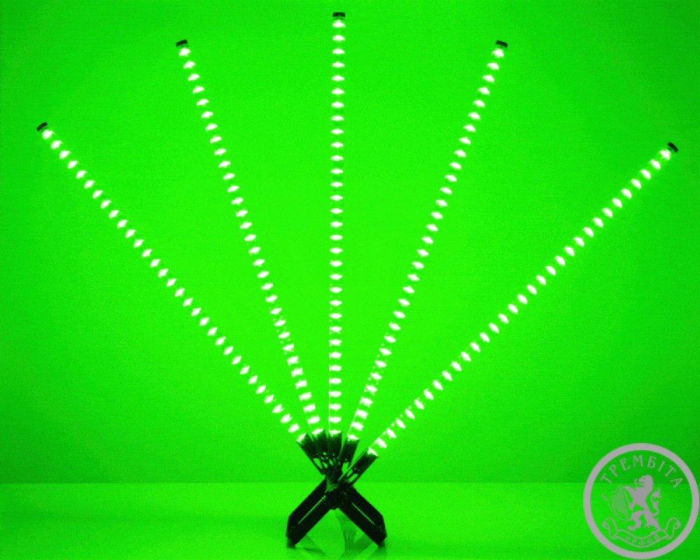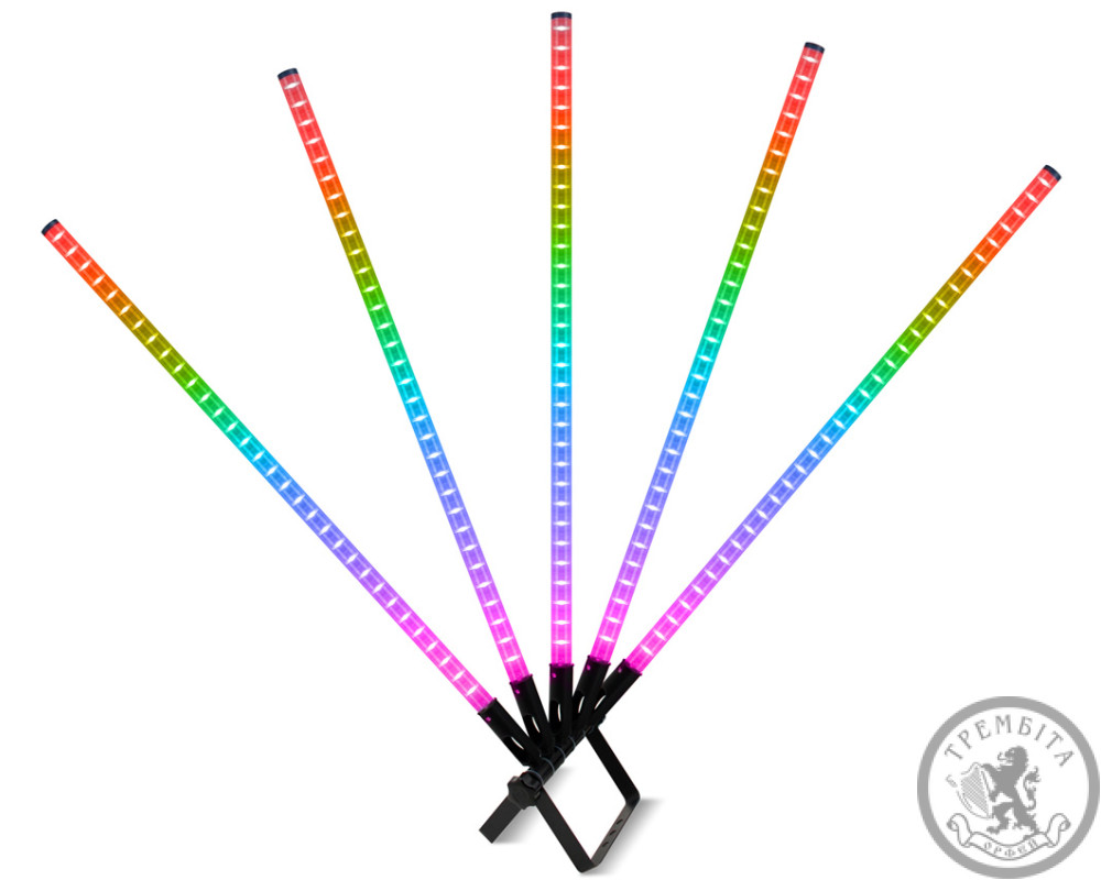 - 5 прозорих труб (32 RGB світлодіоди в кожній)