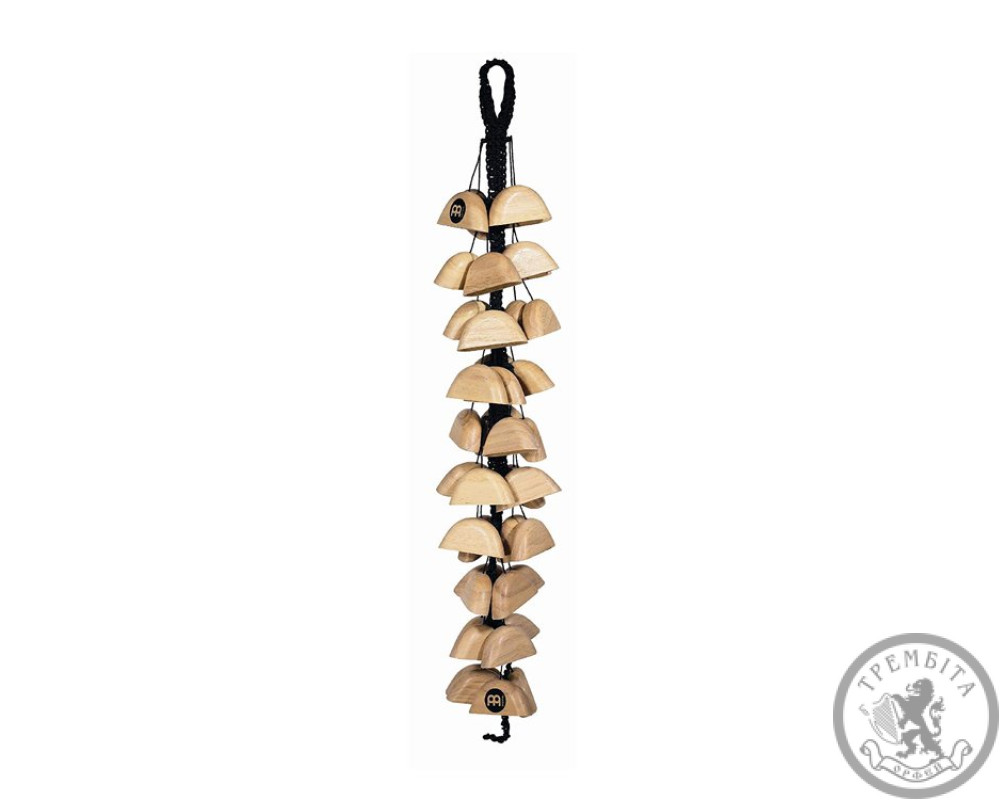 Бердз MEINL BI1NT состоит из набора одинаковых «ракушек», подвешенных на текстильном шнурке, который закрепляется на стойке или имеет ручку, за которую погремушку держат во время игры.