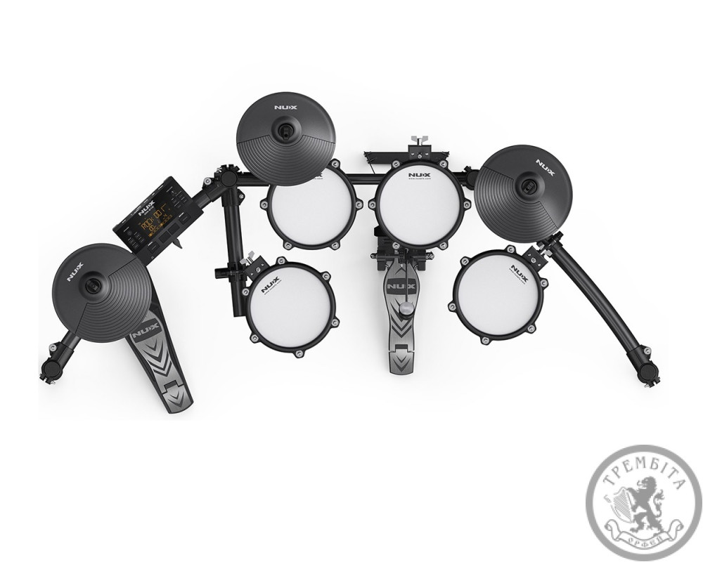 NUX DM-210 – це ударна установка початкового рівня, оснащена сітчастими педами, з можливістю налаштування їх щільності.