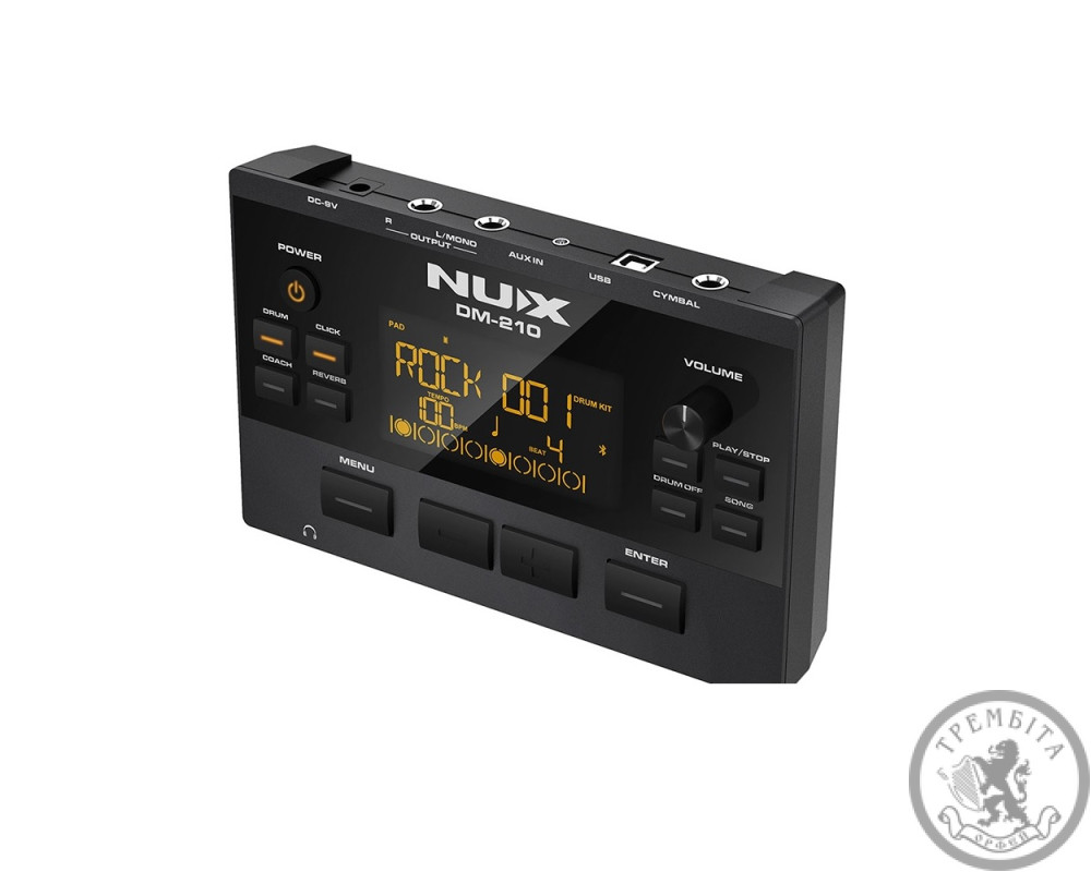 DM-210 має функцію вчителя, яка допоможе тренувати базові навички гри на барабанах. Також можна використовувати інтерфейс Aux in або Bluetooth для відтворення власних треків.
