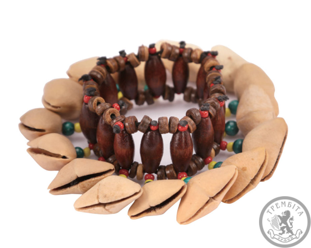 Браслет-перкусія виготовлений з дерева та горіхів кенарі.