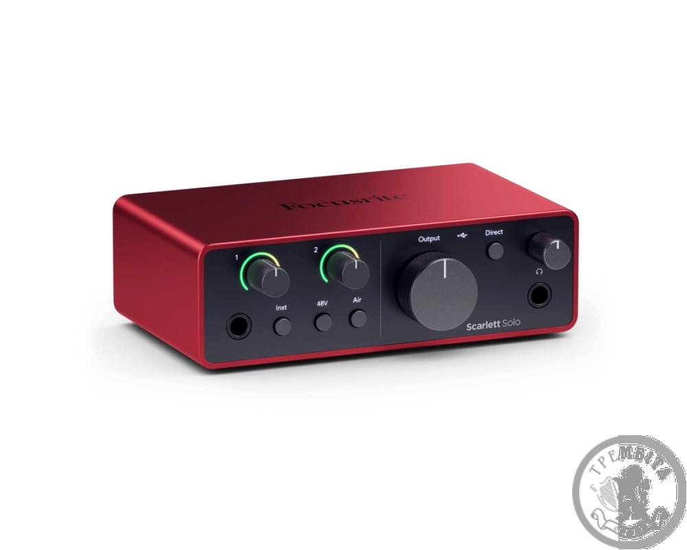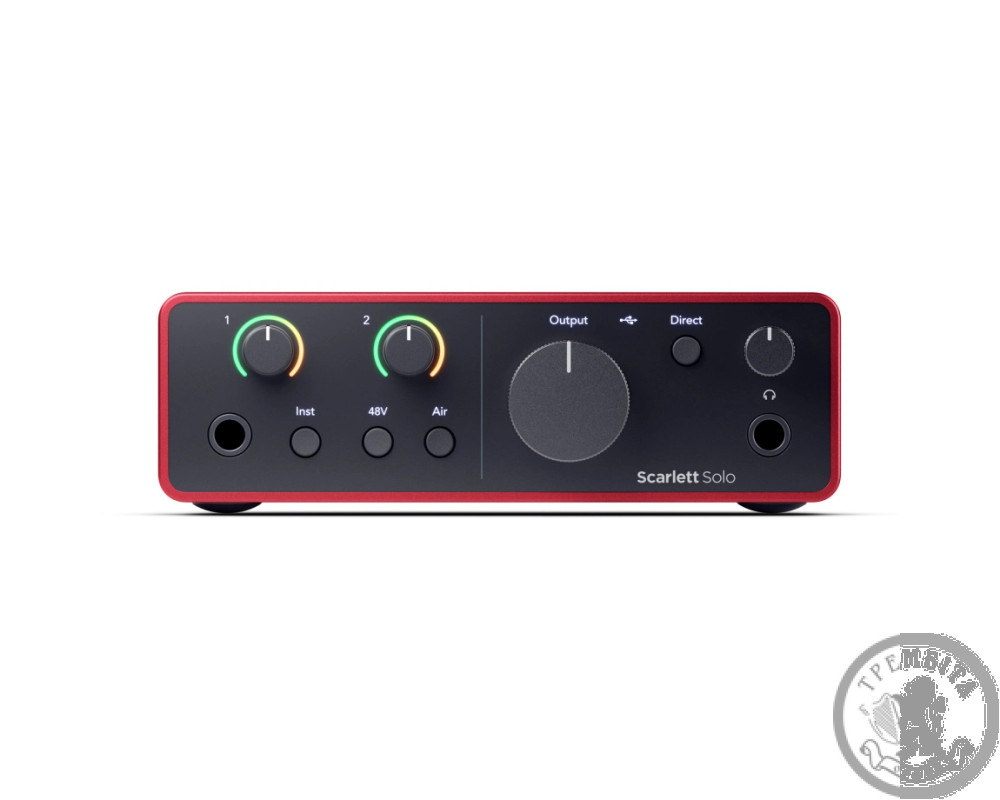 Focusrite Scarlett Solo 4th Gen аудіоінтерфейс з підключенням USB 2.0, 2 входи/2 виходи, 1 мікрофонний передпідсилювач, 24-біт/192 кГц, в комплекті USB кабель (Type C to A), колір – червоний.