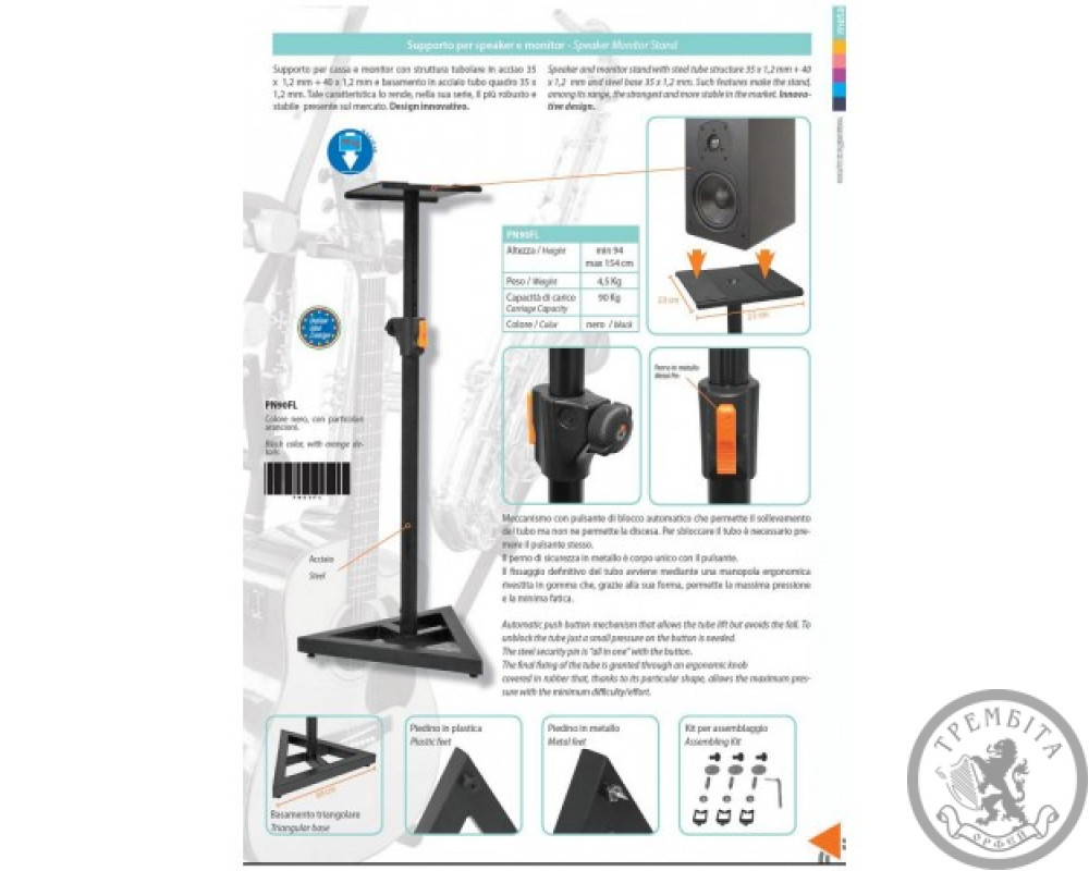 Телескопическая пневматическая стойка для акустических систем общего назначения, студийных мониторов, hi-fi & hi-end-акустики. Высота: 94 - 154 см. Вес: 4,5 кг. Стойка легко регулируется по высоте при помощи пневматического механизма и фиксатора. Надёжное треугольное основание обеспечивает устойчивость конструкции. Имеется возможность установки на шипы для акустической развязки от пола и реалистичной передачи низких частот. Максимальная нагрузка: 90 кг. Цвет чёрный.