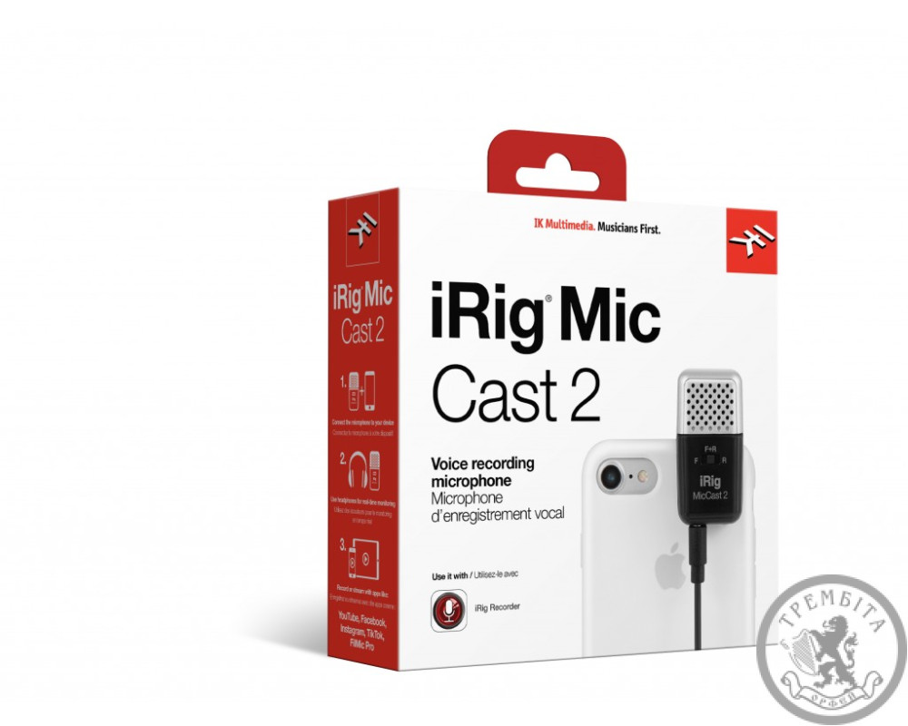 iRig Mic Cast 2 - это крохотный микрофон с величественными звуком. Наследник iRig Mic Cast от IK Multimedia. C его помощью вы добьётесь идеальной записи звука посредством iPhone, iPad или Android-устройства. Новый двукапсульный дизайн позволяет выбирать направление записи (спереди или сзади) и подавлять посторонний шум. Можно также выбрать всенаправленную запись, которая прекрасно подойдёт при съемках интервью или вопрос-ответ конференций.