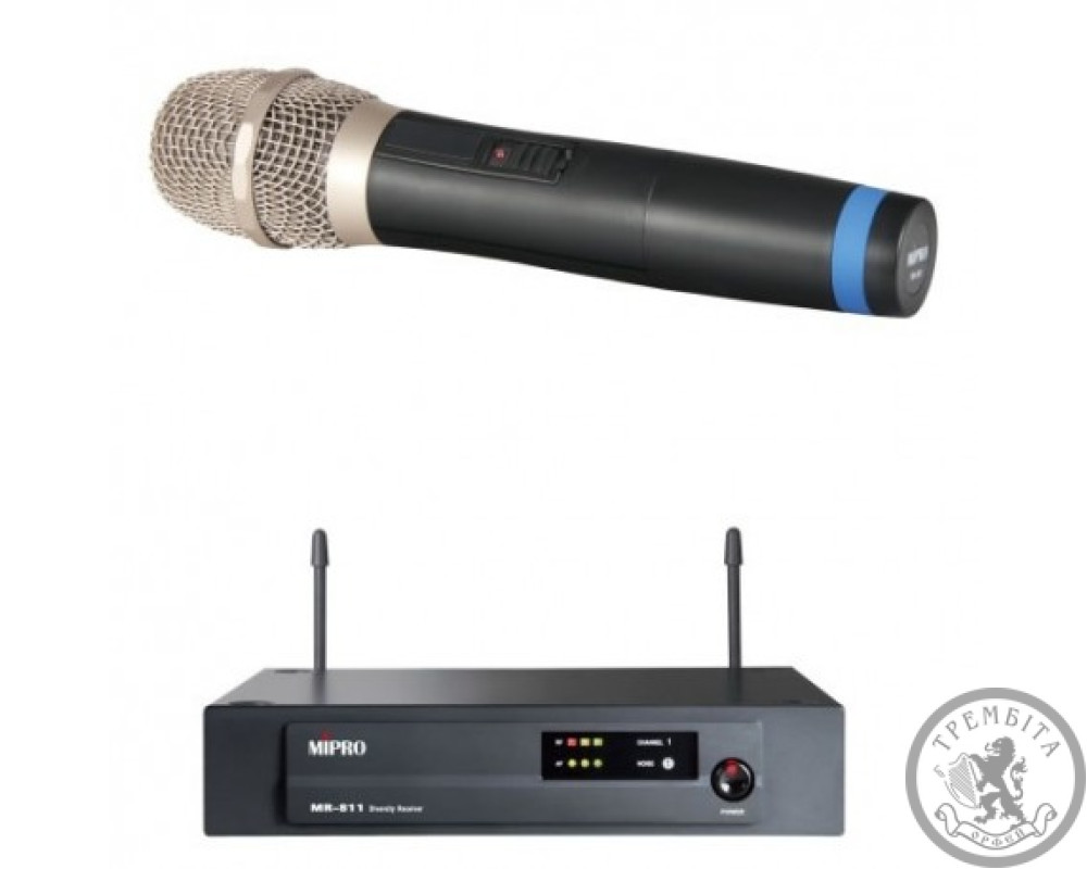 MIPRO MR-811 / MH-80 / MD-20 (814.875 MHZ) DYNAMIC (MU-59B) - UHF одноканальнa мікрофонна радіосистема з ручним динамічним мікрофоном MH-80 (комплект), мікрофонний тримач.