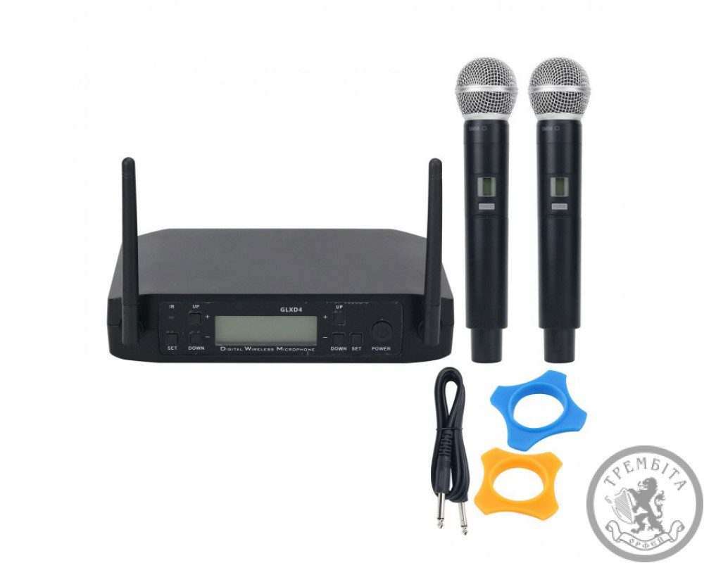 Радіосистема GLXD4 - це доступний і зручний спосіб позбутися дратівливих проводів. Два ручні динамічні мікрофони з вбудованими передавачами працюють від стандартних батарей типу АА (пальчикових) і забезпечують стабільну передачу сигналу на відстань до 130-ти метрів в умовах прямої видимості.