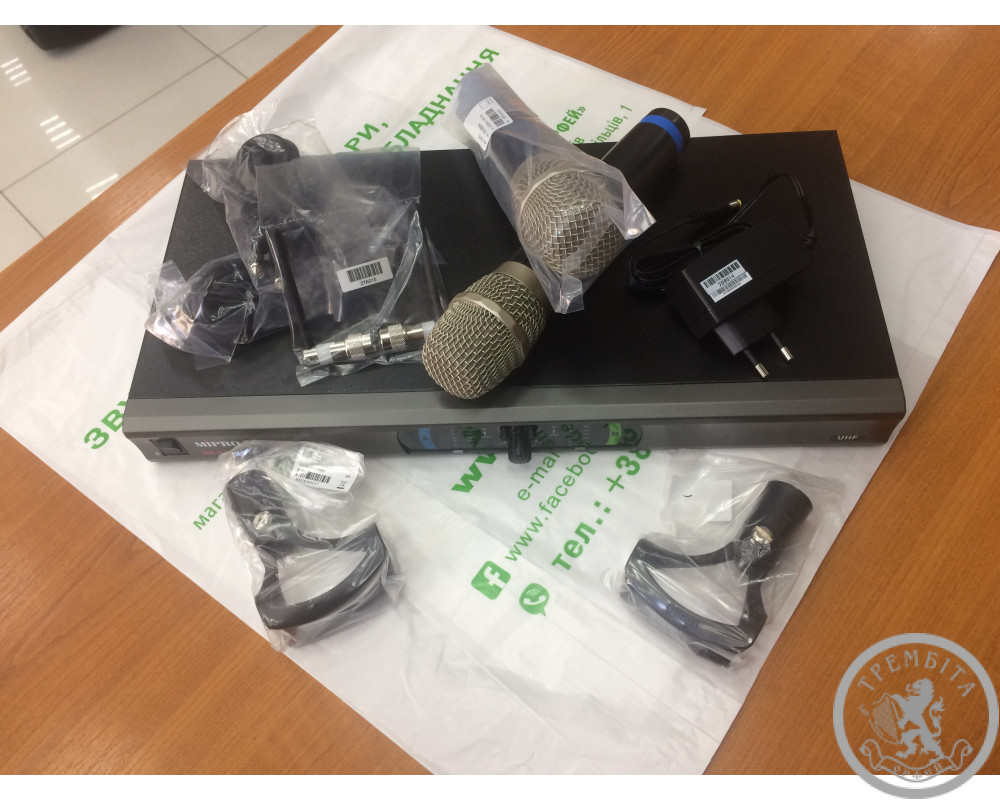· Два ручных конденсаторных кардиоидных микрофоны Miрro MH-80 и два микрофонных владельца.