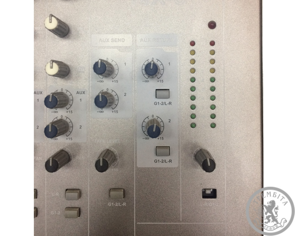 Аналоговый микшерный пульт, 8 каналов (4 моно + 2 стерео). Процессор эффектов. Фантомное питание.