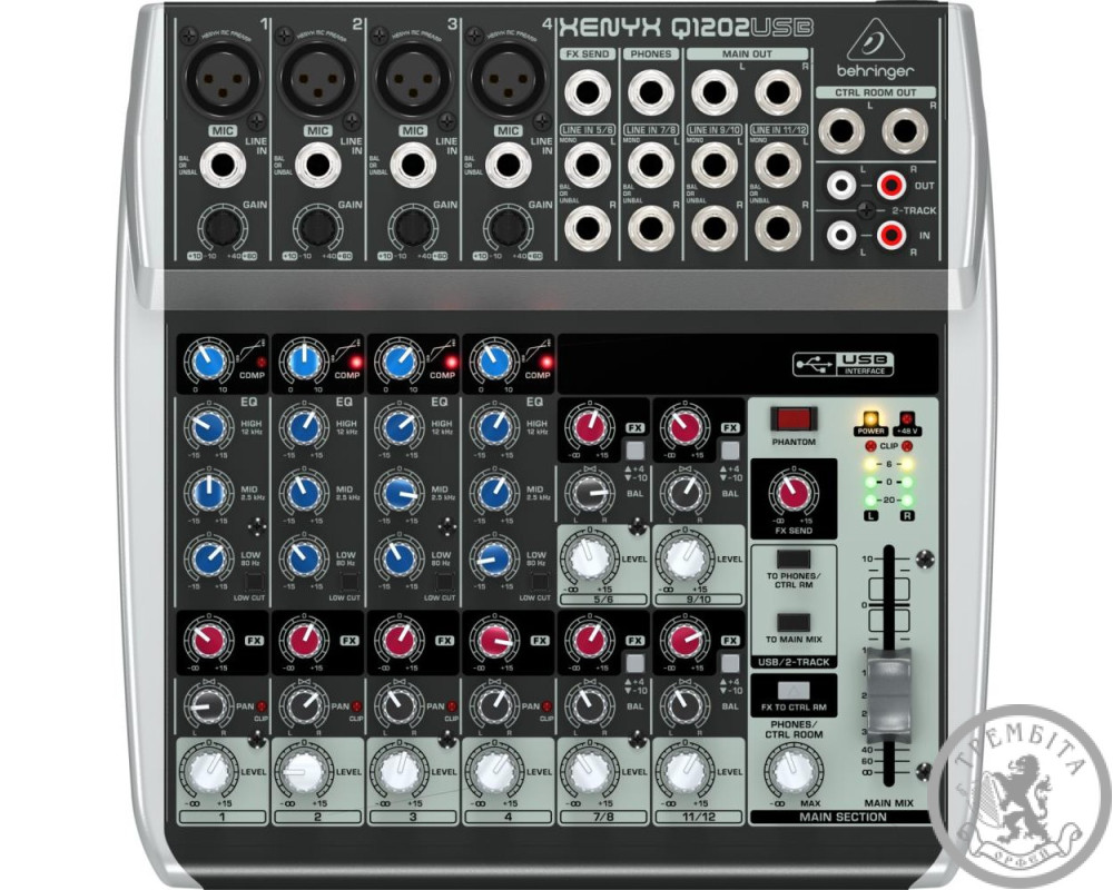 QX1202USB вероятно, наиболее функциональный и профессиональный микшер из тех, что можно отнести к портативным. Инженеры Behringer постарались уместить в небольшой корпус всю ту электронику, которая обычно достаётся «полновесным» студийным микшерам: и фильтры паразитарных частот, и качественный эффект-процессор, и переходники, позволяющие расширять функционал подключением дополнительных устройств.
