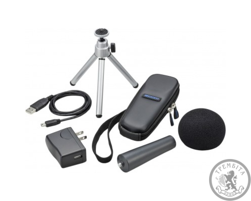 Для простої і зручної зарядки вашого Zoom H1 - використовуйте USB-адаптер. USB-кабель дозволить підключити H1 до будь-якого комп'ютера для передачі даних. Також в комплект входять: захист від вітру, що знижує шумові перешкоди, перехідник для установки рекордера на мікрофонну стійку, регульований настільний штатив-тринога, м'який чохол, адаптер для зарядки і USB-кабель.