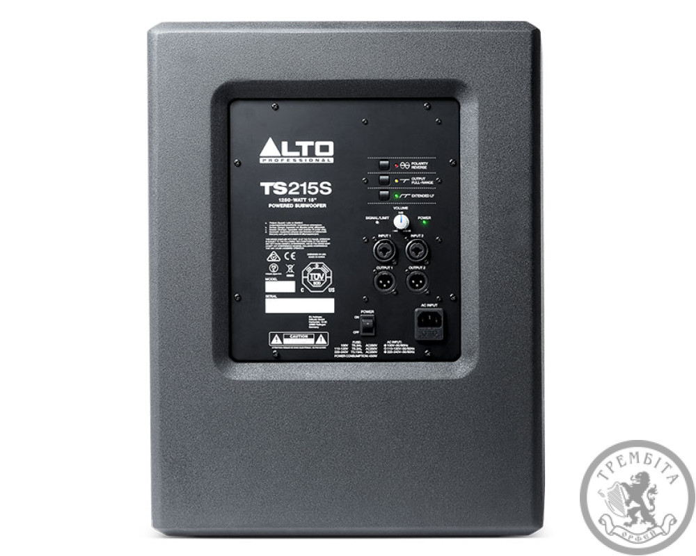 Крім вбудованого підсилювача і длинноходная 15 "динаміка, TS215S також пропонує стерео входи, внутрішній активний кросовер, і розміщується в надійному компактному корпусі, виготовленому з міцної фанери з вбудованими сталевими ручками. Частотний діапазон і кросовери TS215S були налаштовані таким чином, щоб забезпечити гладке , щільне звучання в діапазоні 35 - 95 Гц.