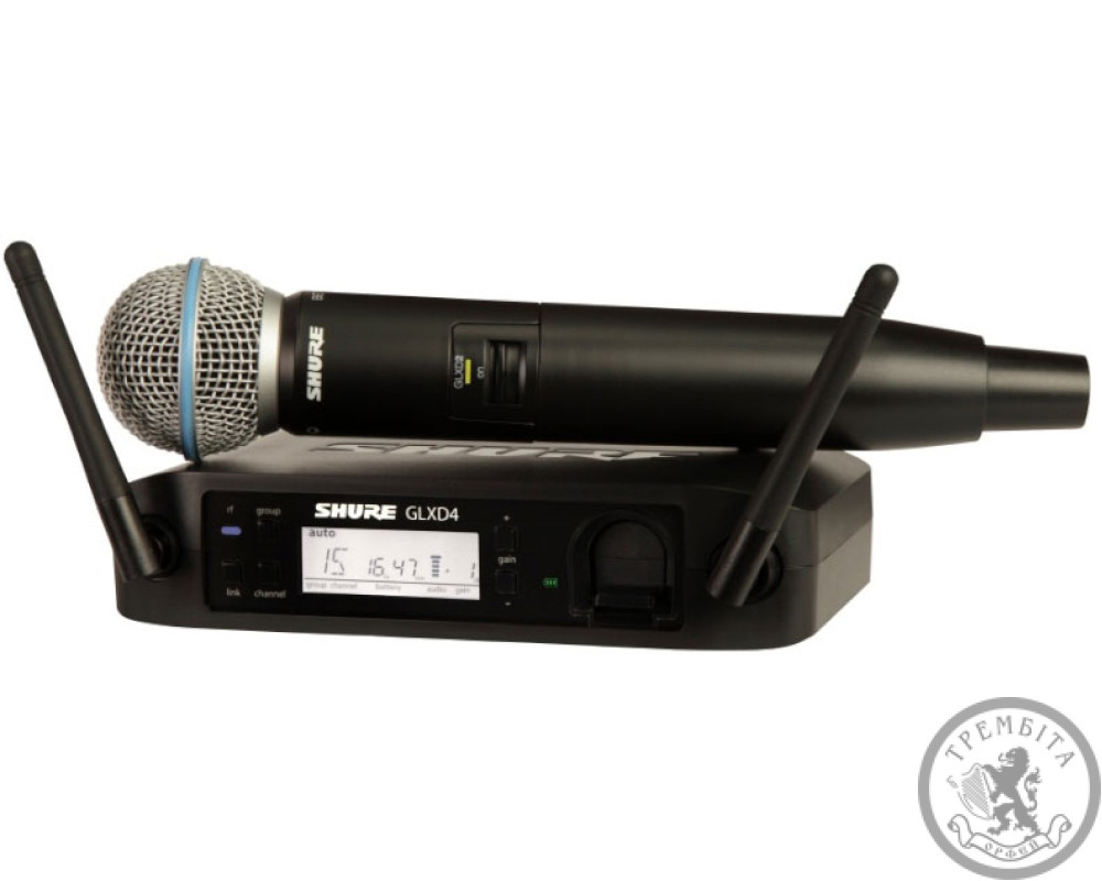 Дана система Shure GLXD24EBeta58 відрізняється функціональністю та тривалим строком використання. Вона має бездротовий приймач одноканального типу та можливість підзарядки акумулятора. Під час роботи приймач заряджає вмонтовану батарейку. На пристрої відображається рівень заряду та показник в хвилинах, скільки він ще може працювати. Присутній кольоровий індикатор батарейки. Є можливість дистанційно керувати гучністю самого передавача. Система вокальна має невеликі розміри, продуманий сучасний дизайн, компактна та легка. Її просто транспортувати та встановлювати.