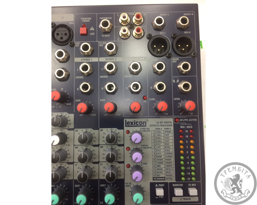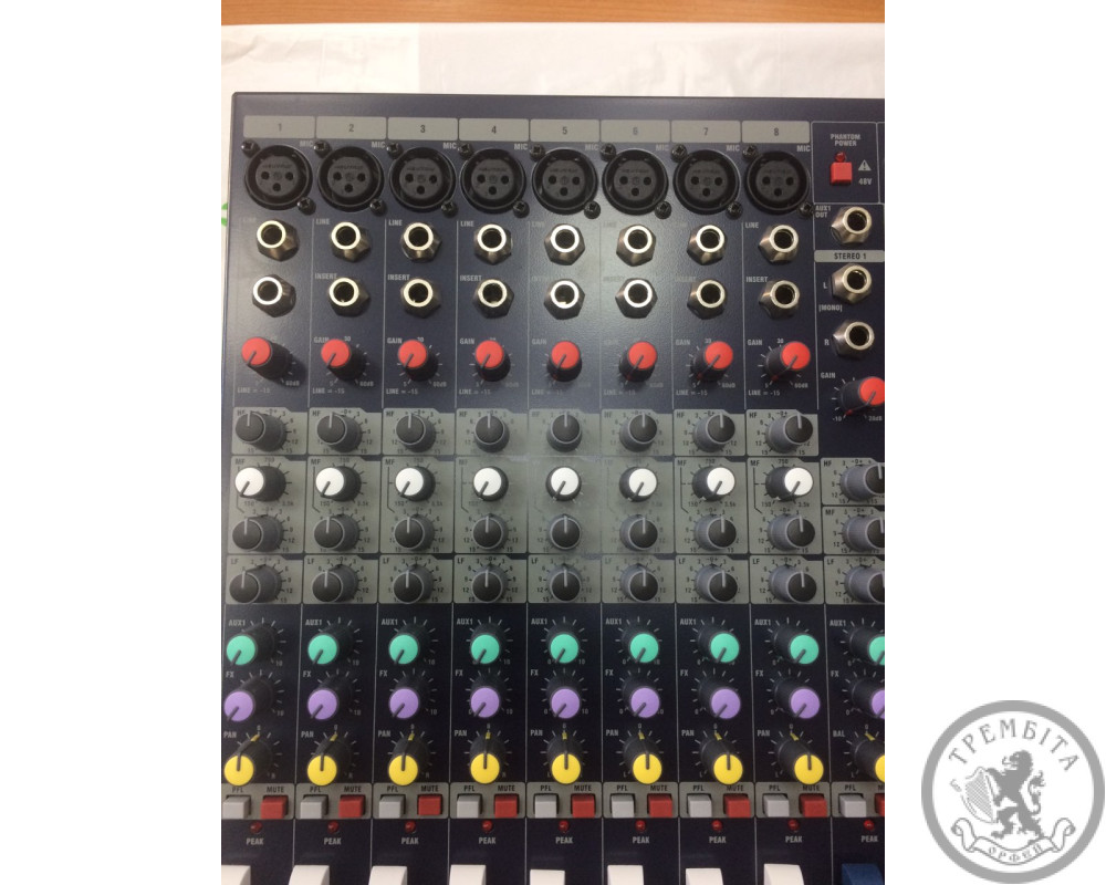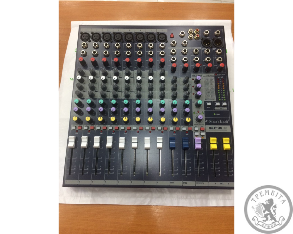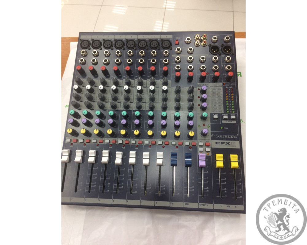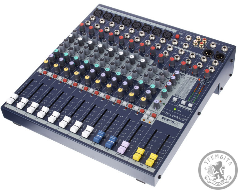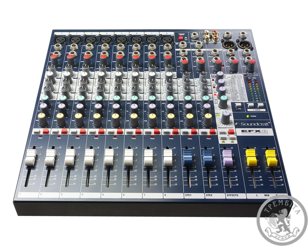 Soundcraft EFX предлагает все Свойства Soundcraft EPM, особенно замечательны из которых конфигурируется aux send, металлические разъемы XLR и 1/4 ", стерео входы RCA для воспроизведения и стерео выходы RCA для записи 3-хполосный эквалайзер с Развернутым диапазоном Средних частот на моно входах, 3-хполосный эквалайзер на двух стерео входах, разъемы TRS, семисегментного светодиодной индикатор уровня и выход на наушники.