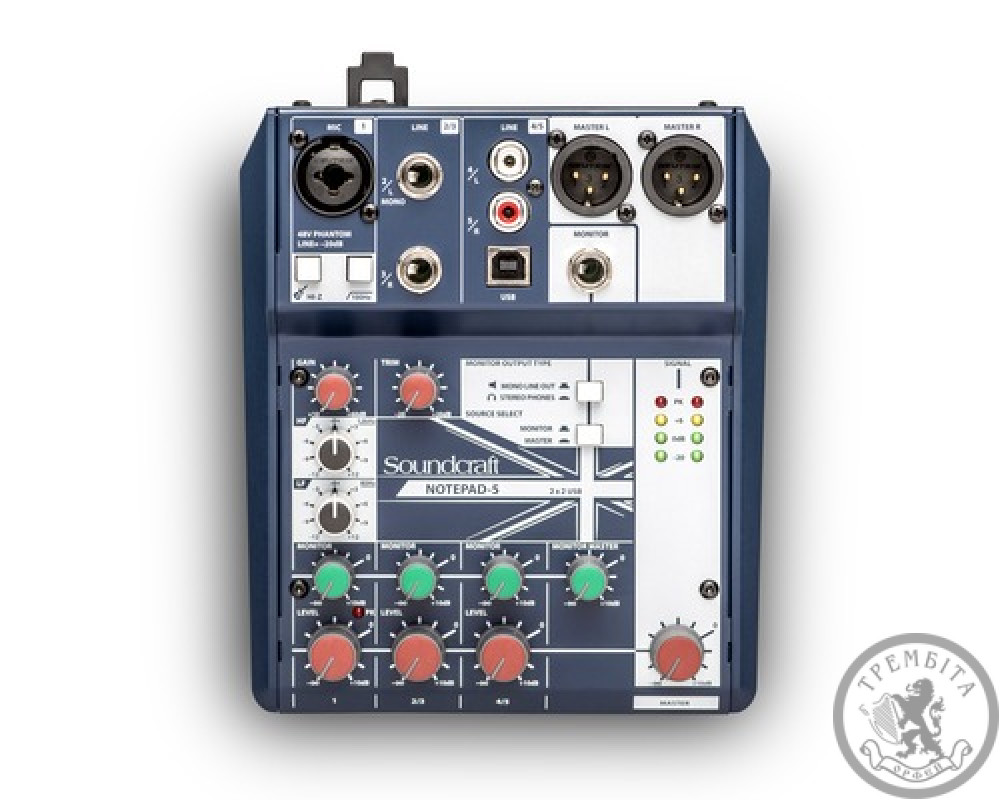 SOUNDCRAFT NOTEPAD-5 представляет собой аналоговый микшер, имеет один моноканал, один моно / стереоканал и один стереоканал, аудиоинтерфейс для шины USB.