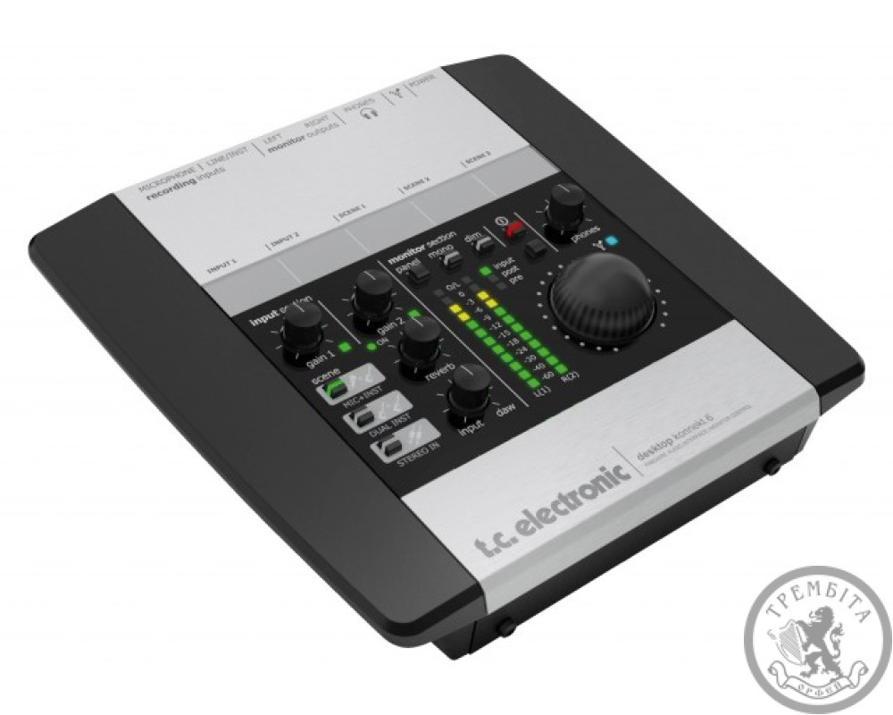 Desktop Konnekt 6-являє собою Fire Wire аудіо інтерфейс з конфігурацією входів - mic + instr / instr + instr / stereo line і 2 х стерео виходів. А також "вбудованого" ревербератора- M40 Studio Reverb. Konnekt 6 пропонує вам високу якість запису, бездоганний дизайн і новітні технології. Інтерфейс має всі можливості для миттєвого запису інструментів або вокалу на ваш комп'ютер Мас або РС.