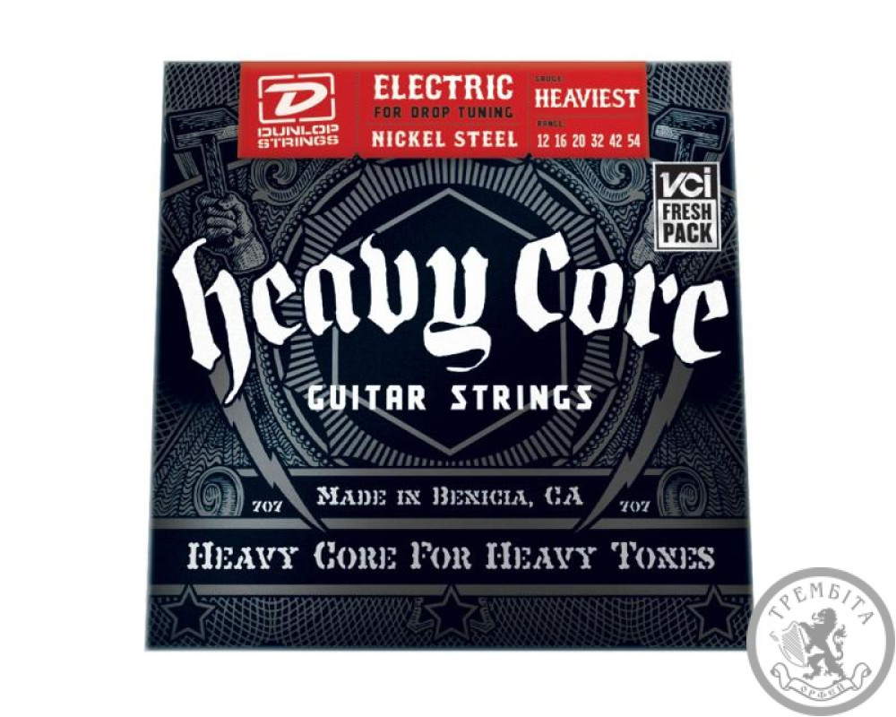 Струни Heavy Core®, як і всі струни Dunlop виробляються з високоякісних матеріалів для отримання чудового тону, балансу і відчуття від гри.