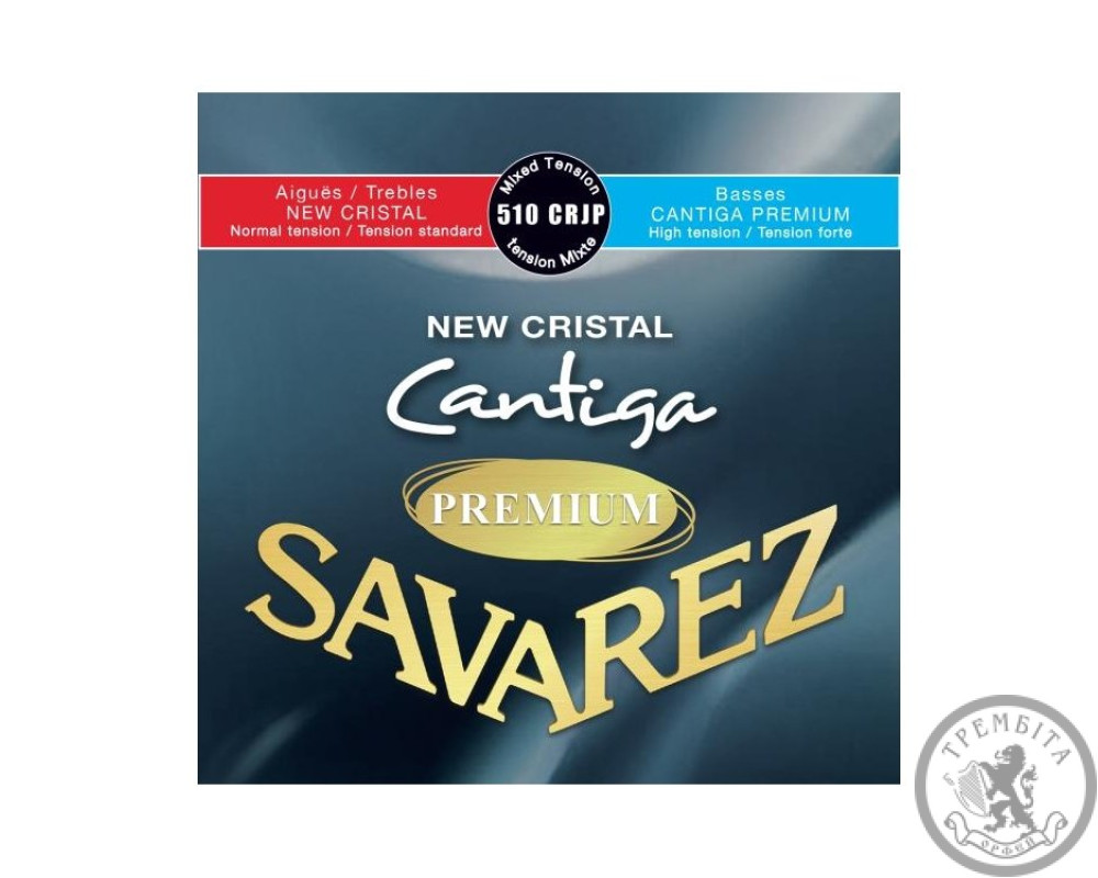 Нова серія струн для класичної гітари Savarez New Cristal Cantiga Premium пропонує чисте й багате звучання кожної ноти. Струни 1st - 2nd та 3rd виготовляються з високоякісного нейлону, який розроблений компанією Savarez й має назву New Cantiga. Нижні струни мають обмотку з посрібленої міді. Струни Savarez 510CRJP мають змішаний натяг: перші 3 струни - Normal Tension, а басові - High Tension. Ідеальне поєднання визнане у всьому світі за своє яскраве та чисте звучання. Сенсаційне відкриття. Нове комплексне ядро струни пропонує багатогранність можливостей та характеристик: колір, звучання, неймовірна віддача.