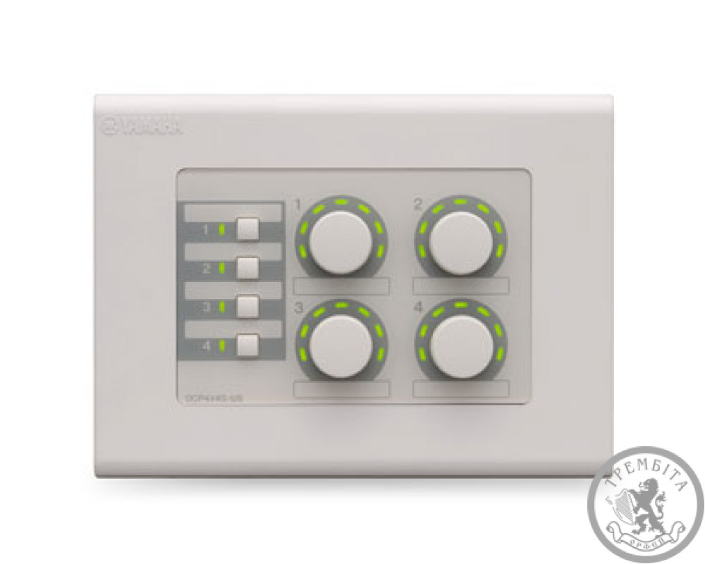 Контрольна панель настінна для DCP сумісних пристроїв, 4 зони + 4 регулятора звуку, підключення по CAT5 кабелю.